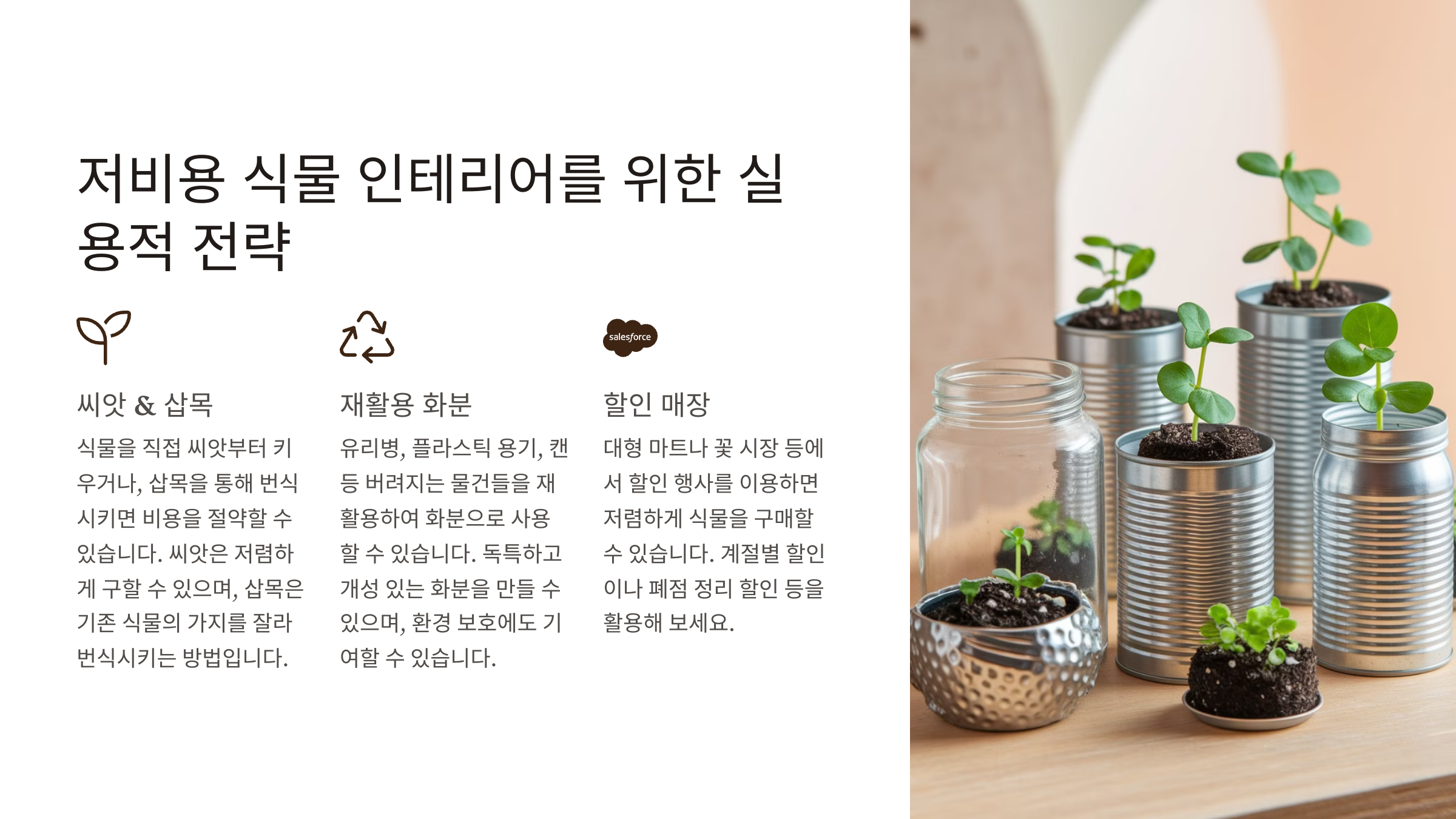 "식물로 집을 꾸미고 싶은데 비용이 부담돼요!" 💰 걱정하지 마세요! **적은 비용으로도 감성적인 플랜테리어를 완성할 수 있답니다.** 🌿✨