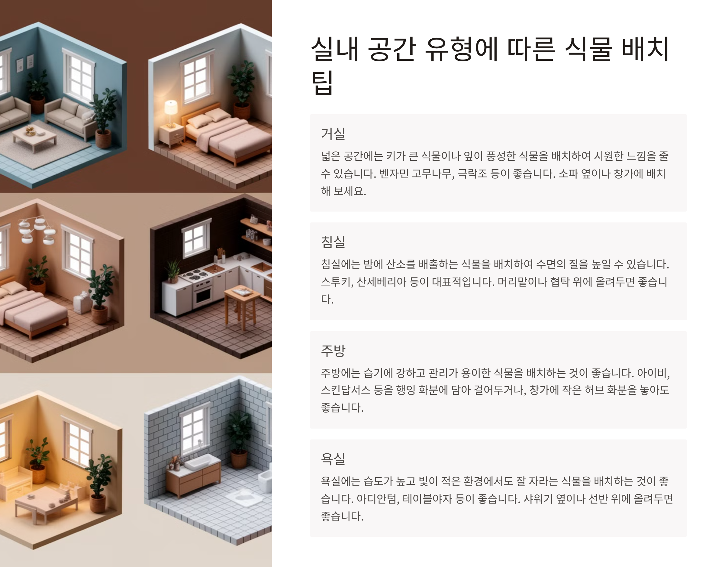 공간에 맞는 식물을 선택하면 **인테리어 효과 + 실용성**까지 잡을 수 있어요! 🌿🏡