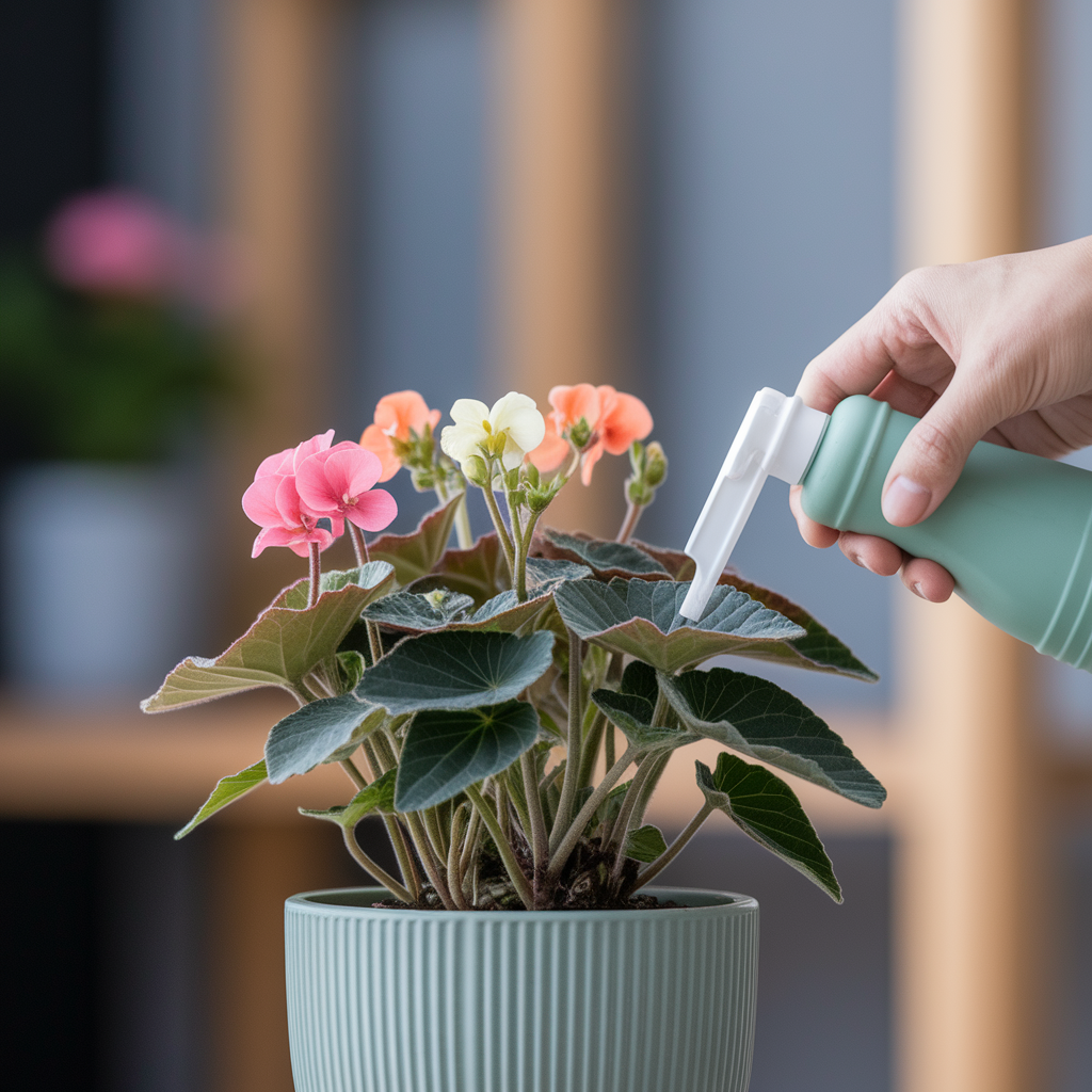 베고니아는 인(P) 성분이 많은 비료를 좋아해요. 인은 꽃을 피우는 데 중요한 역할을 하기 때문이에요. 질소(N) 비율이 너무 높으면 잎은 무성해지지만 꽃이 적게 필 수 있으니 주의해야 해요.