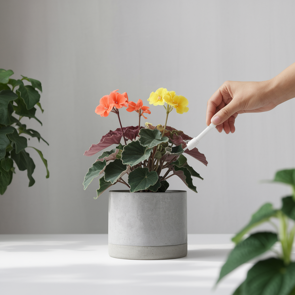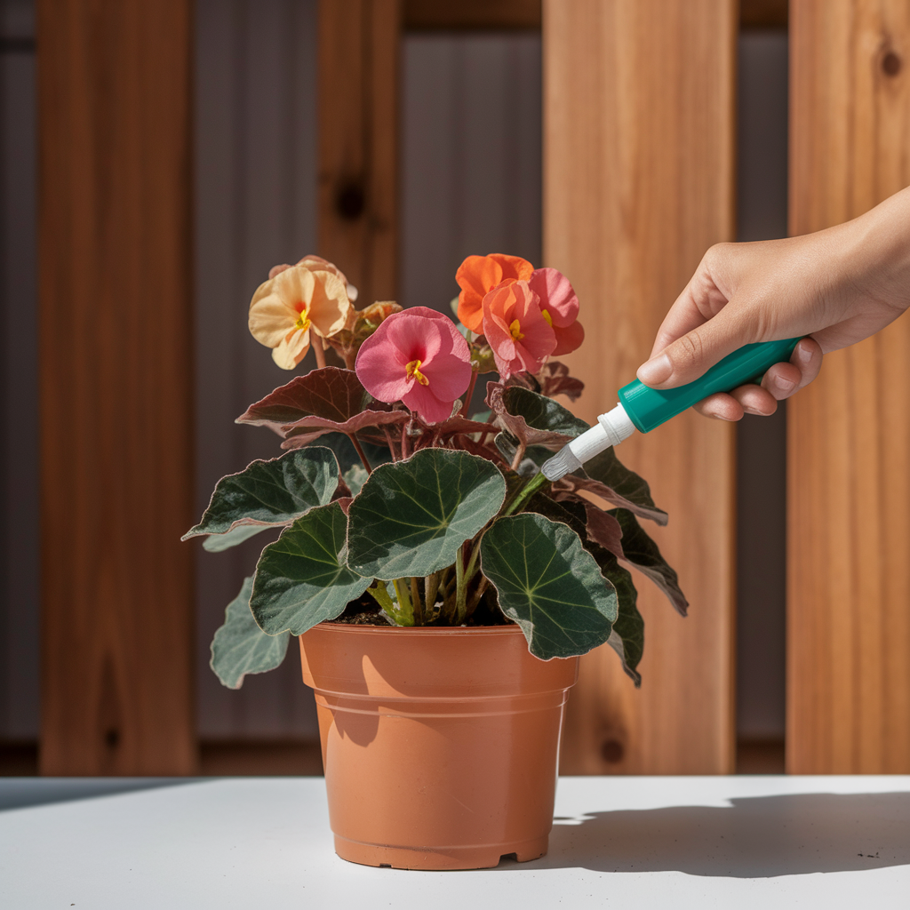 베고니아는 인(P) 성분이 많은 비료를 좋아해요. 인은 꽃을 피우는 데 중요한 역할을 하기 때문이에요. 질소(N) 비율이 너무 높으면 잎은 무성해지지만 꽃이 적게 필 수 있으니 주의해야 해요.