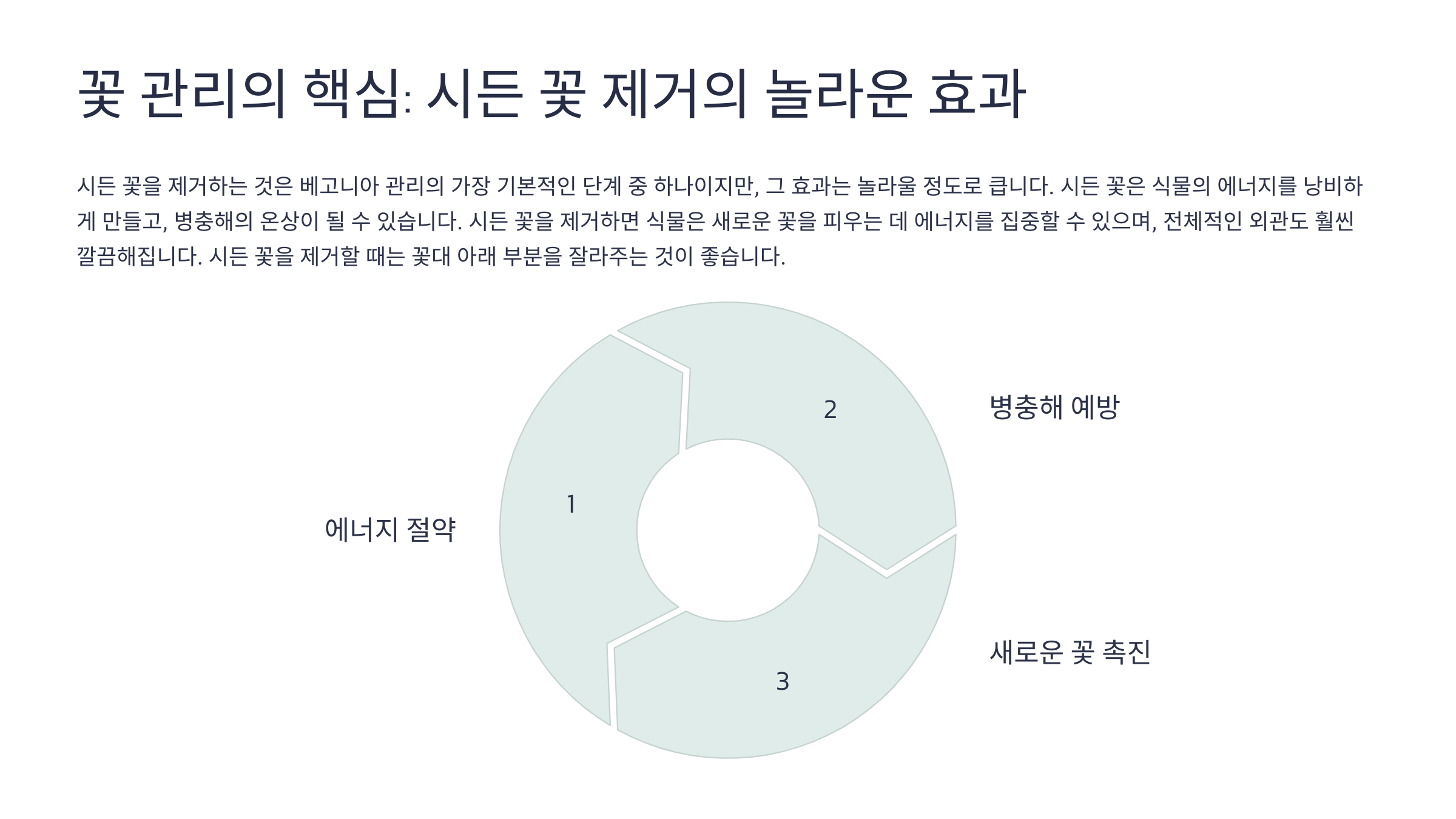 내가 생각했을 때, 시든 꽃을 정리해 주면 진짜 신기하게도 새로운 꽃망울이 금방 올라와요. 작은 노력만으로도 훨씬 오래 베고니아를 즐길 수 있죠! 🌷