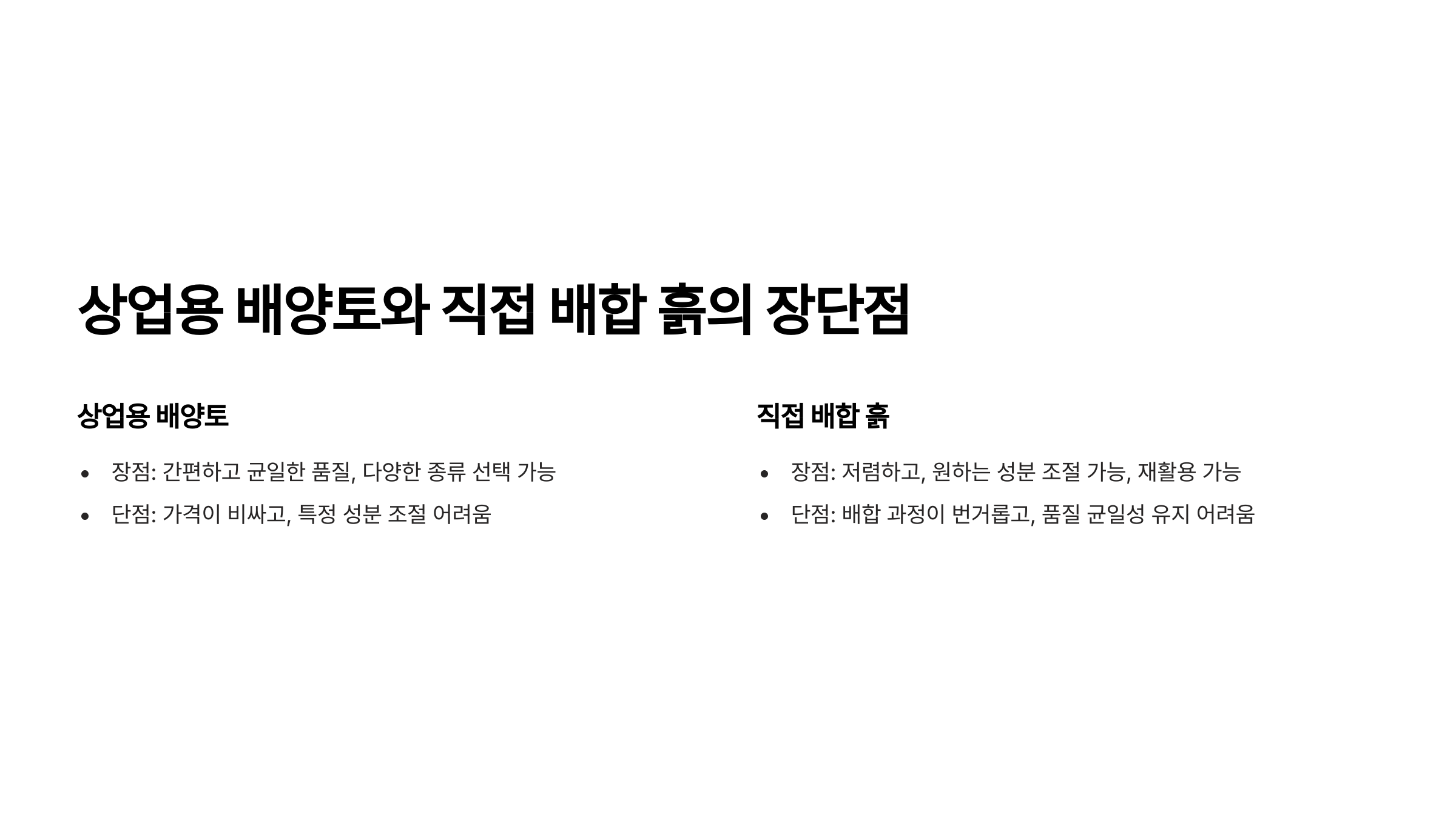 상업용 배양토 vs. 직접 배합 흙 비교