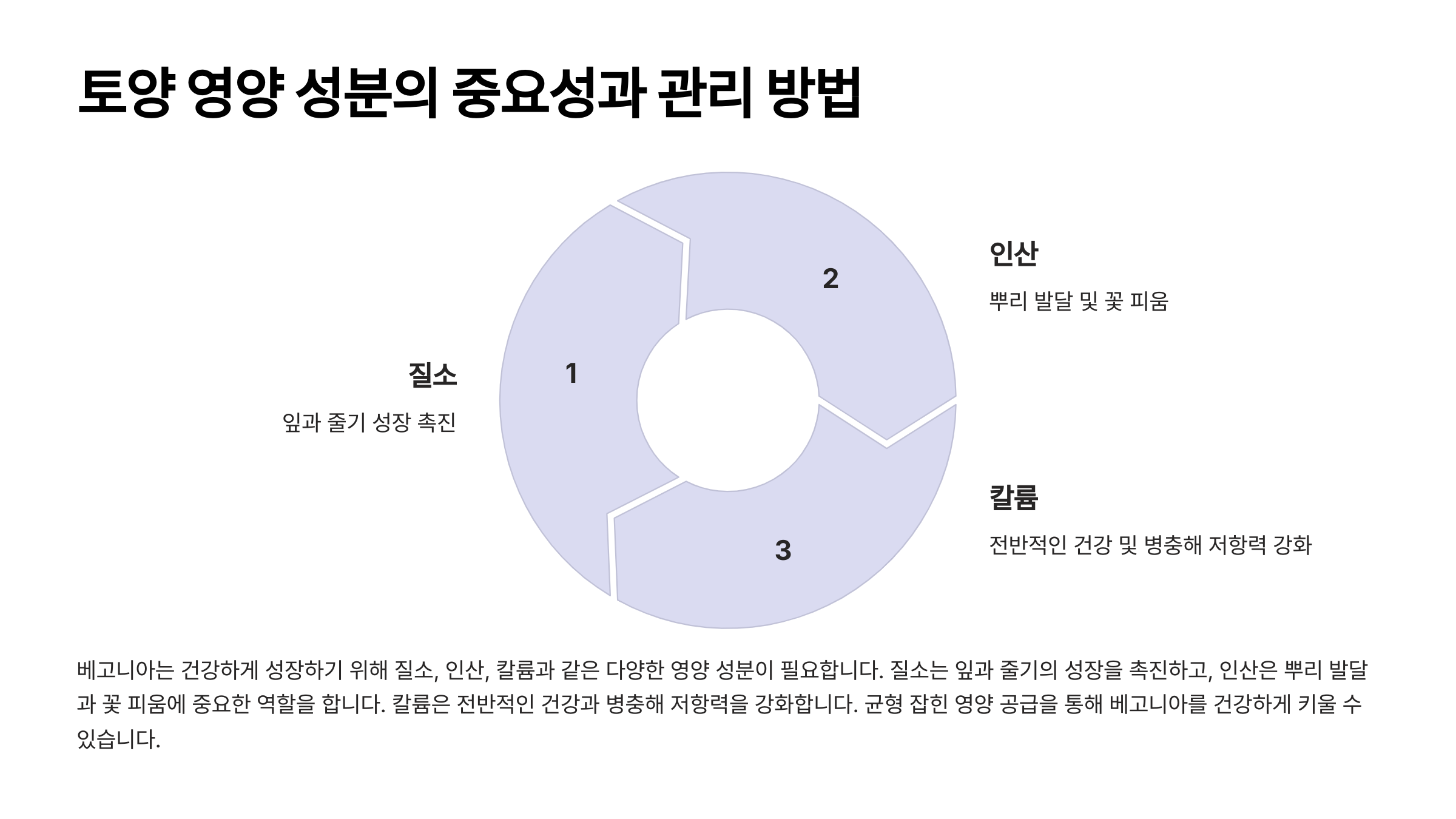 ✔ 칼륨(K): 베고니아의 전반적인 건강을 유지하고 병해를 예방하는 역할을 해요.