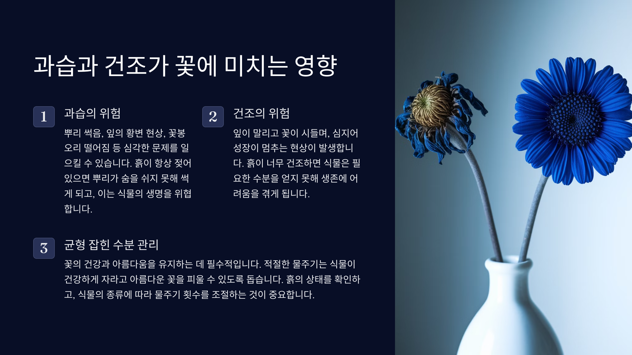 이제 과습과 건조가 꽃에 미치는 영향을 알아볼까요? 💦