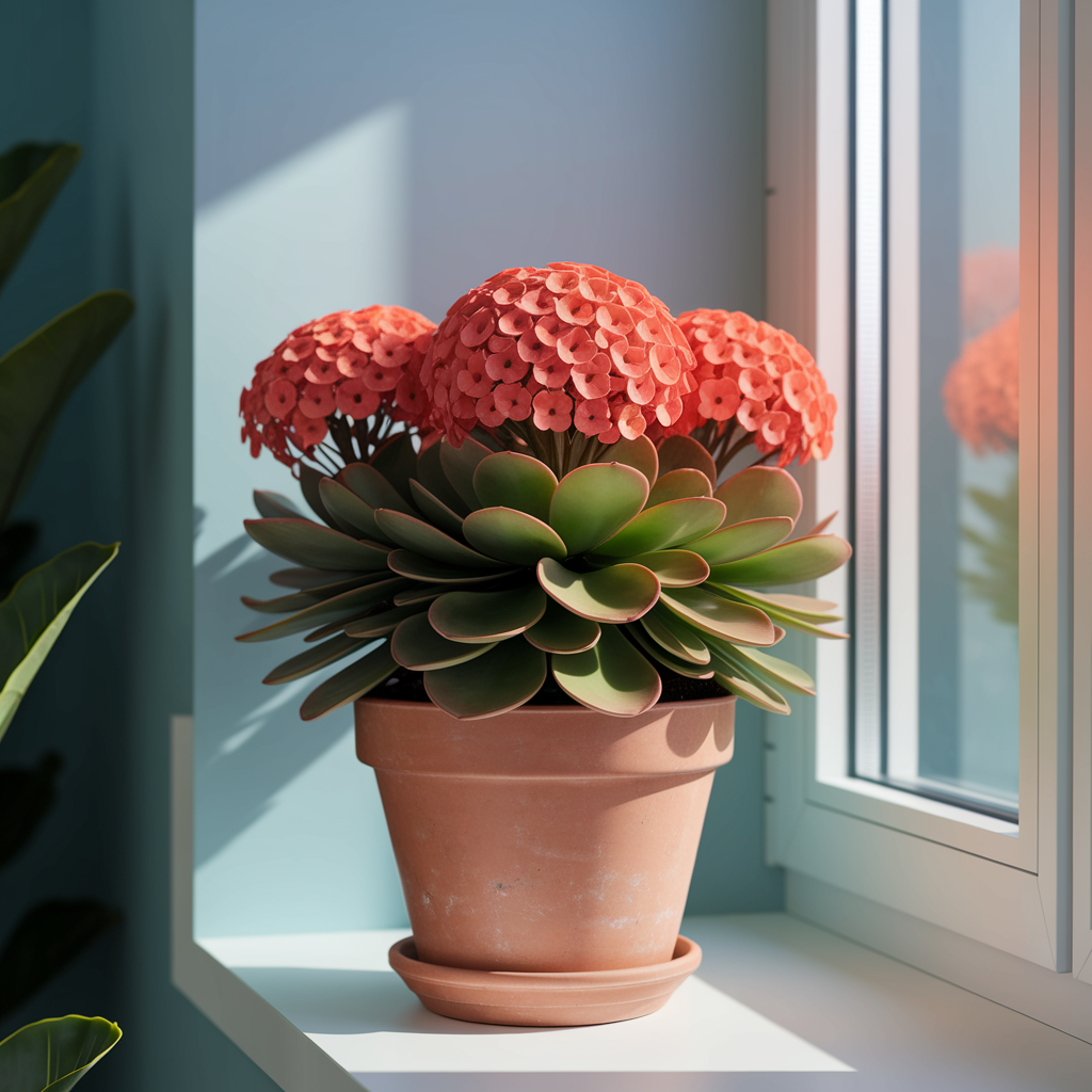 꽃기린은 빛이 많을수록 더 잘 자라고 꽃도 풍성하게 피워요! 만약 집 안이 너무 어둡다면, LED 식물 조명을 활용해보는 것도 좋은 방법이에요. 🌟