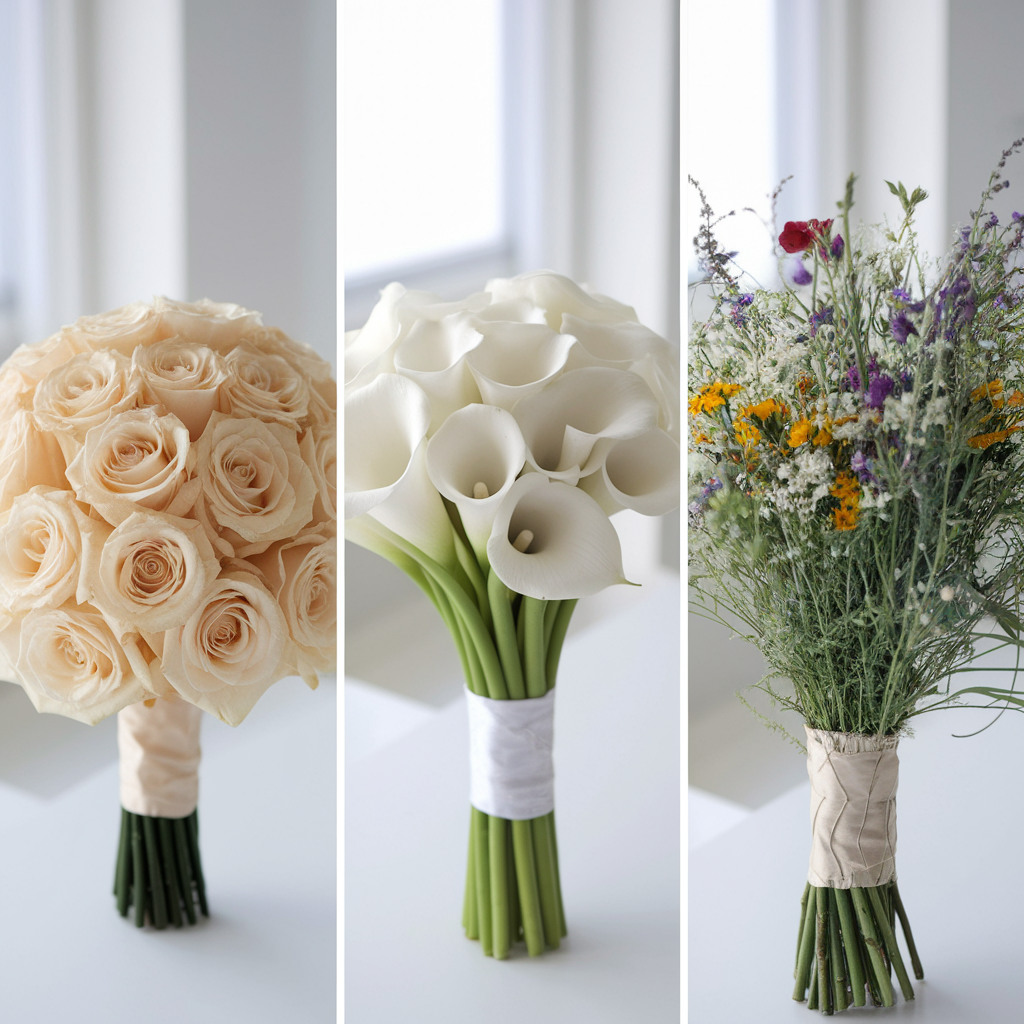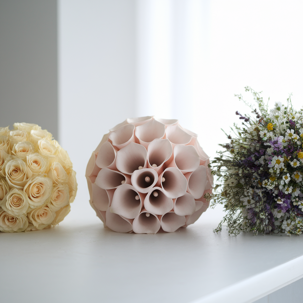- 🖼 부케 모양 유지 – 둥근 형태가 가장 클래식하며, 길게 늘어뜨리면 우아한 분위기를 강조할 수 있어요.