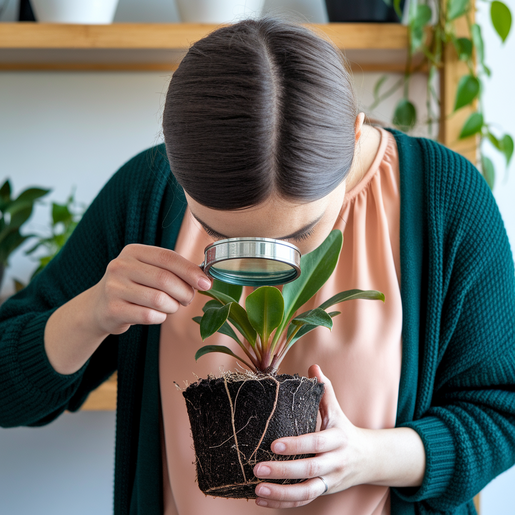 ✅ **뿌리 점검** - 화분 밑에서 뿌리가 너무 많이 튀어나온 식물은 피하는 것이 좋아요.