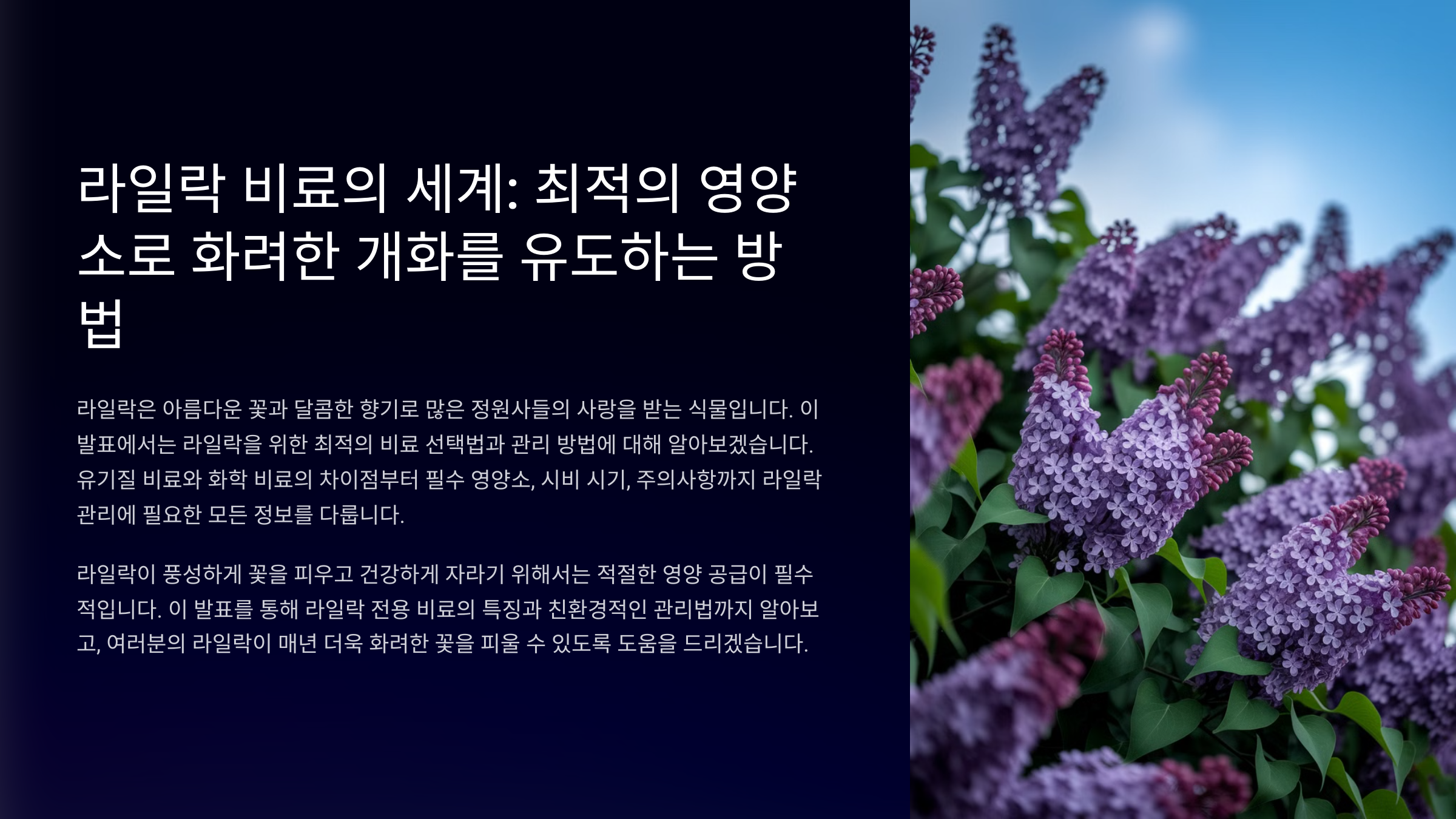 라일락은 적절한 시기에 영양을 공급해야 튼튼하게 자라고 아름다운 꽃을 피울 수 있어요. 🌸 **비료를 언제, 어떻게 주는 것이 가장 효과적일까요?**
