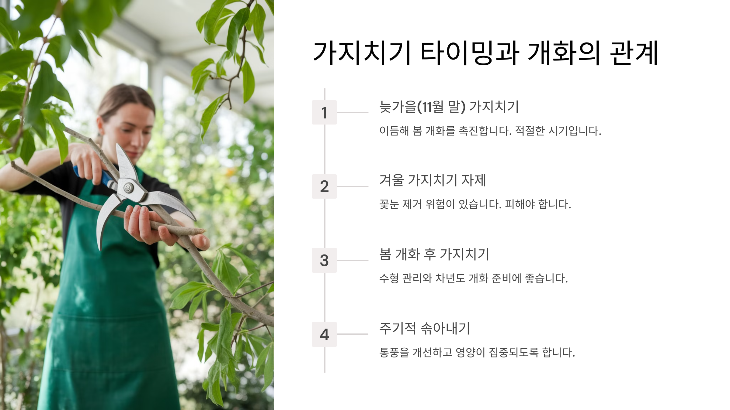 1. 가지치기는 개화 직후에! ✂️