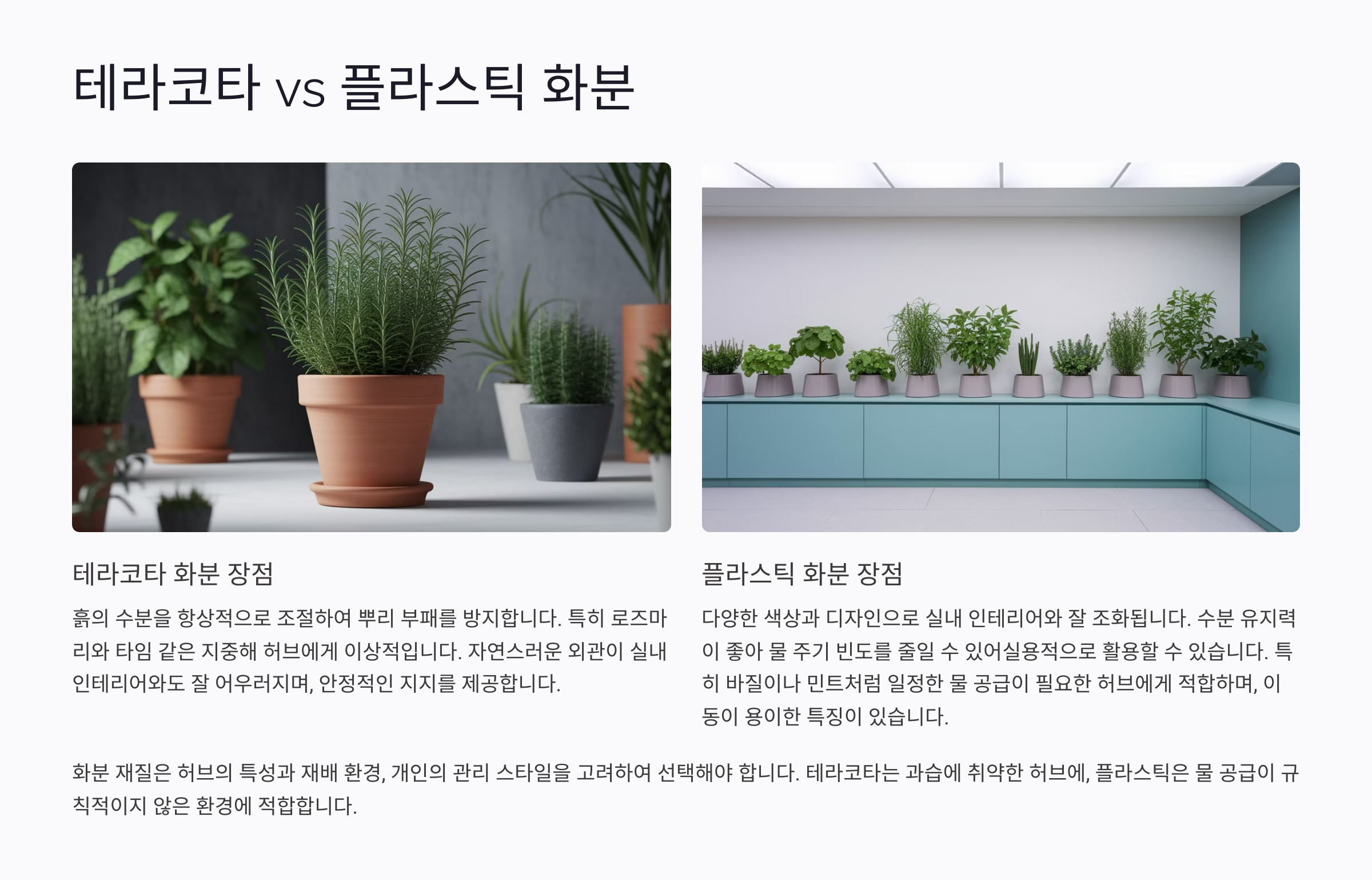 각각의 장단점을 고려해 허브에게 딱 맞는 화분을 선택해보세요! 🌿😊