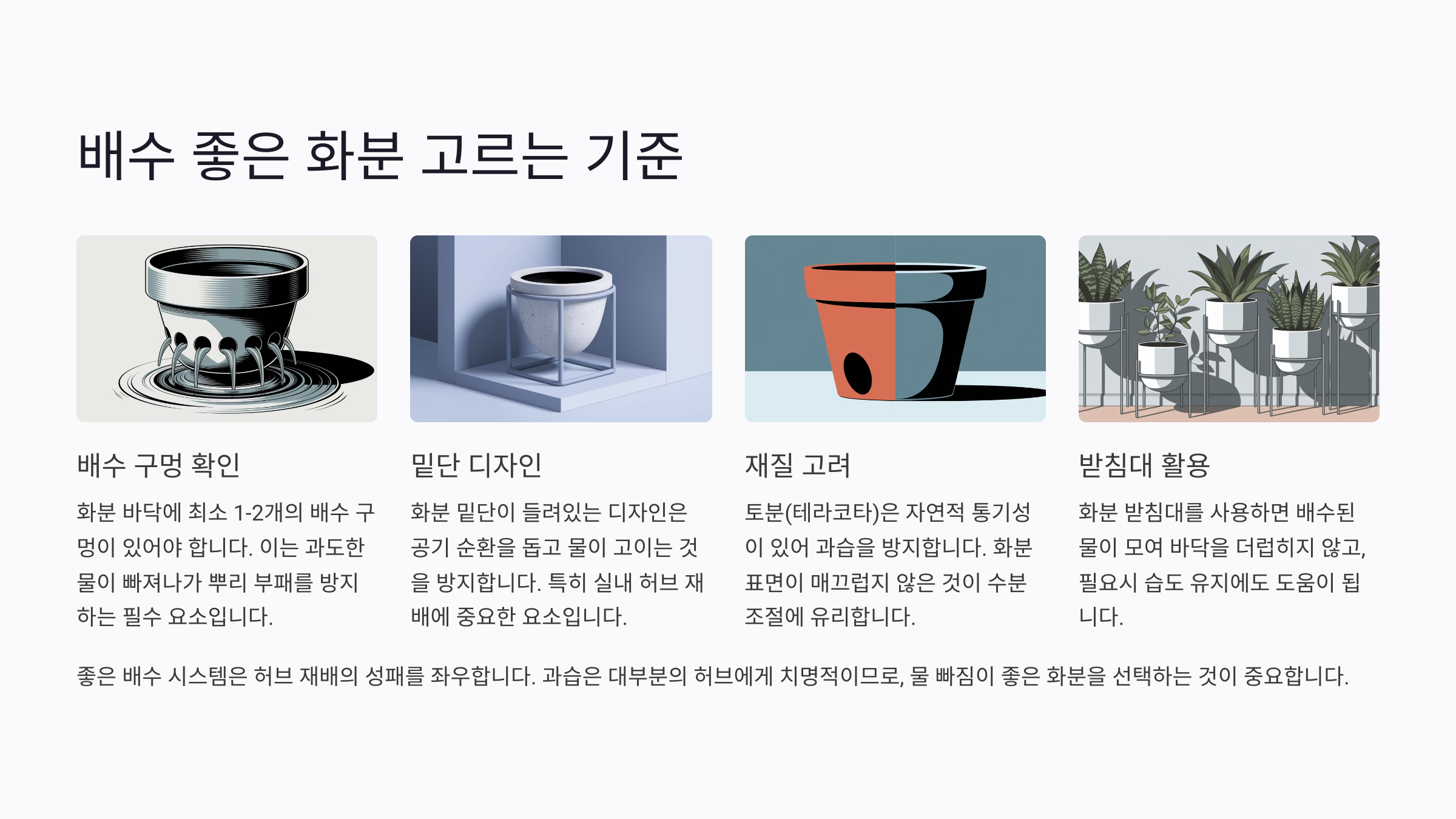 이제 배수가 잘되는 화분을 고르는 방법을 알았으니, 허브를 더욱 건강하게 키울 수 있어요! 🌱😊