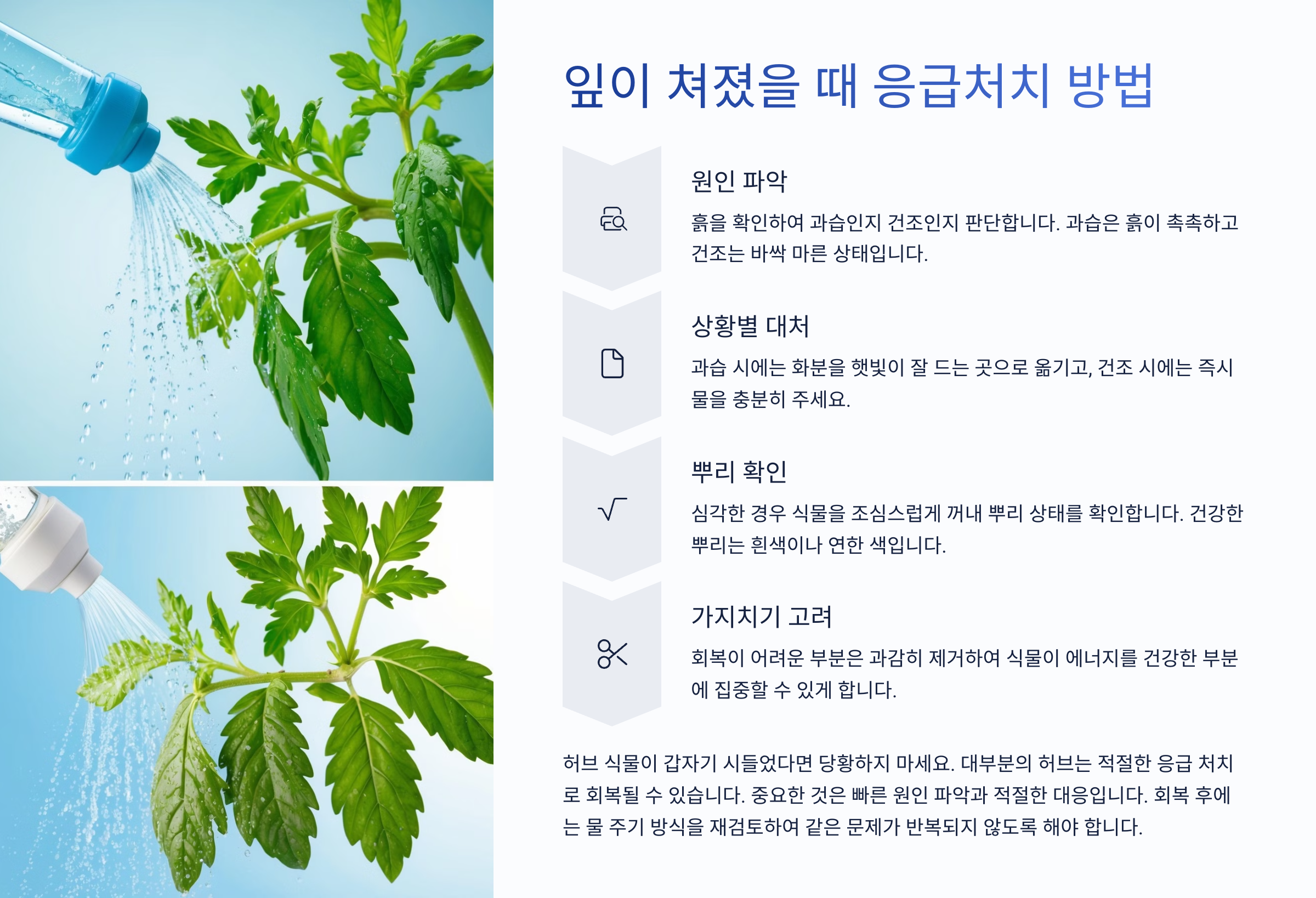 📌 잎 쳐짐 상황별 응급처치 가이드