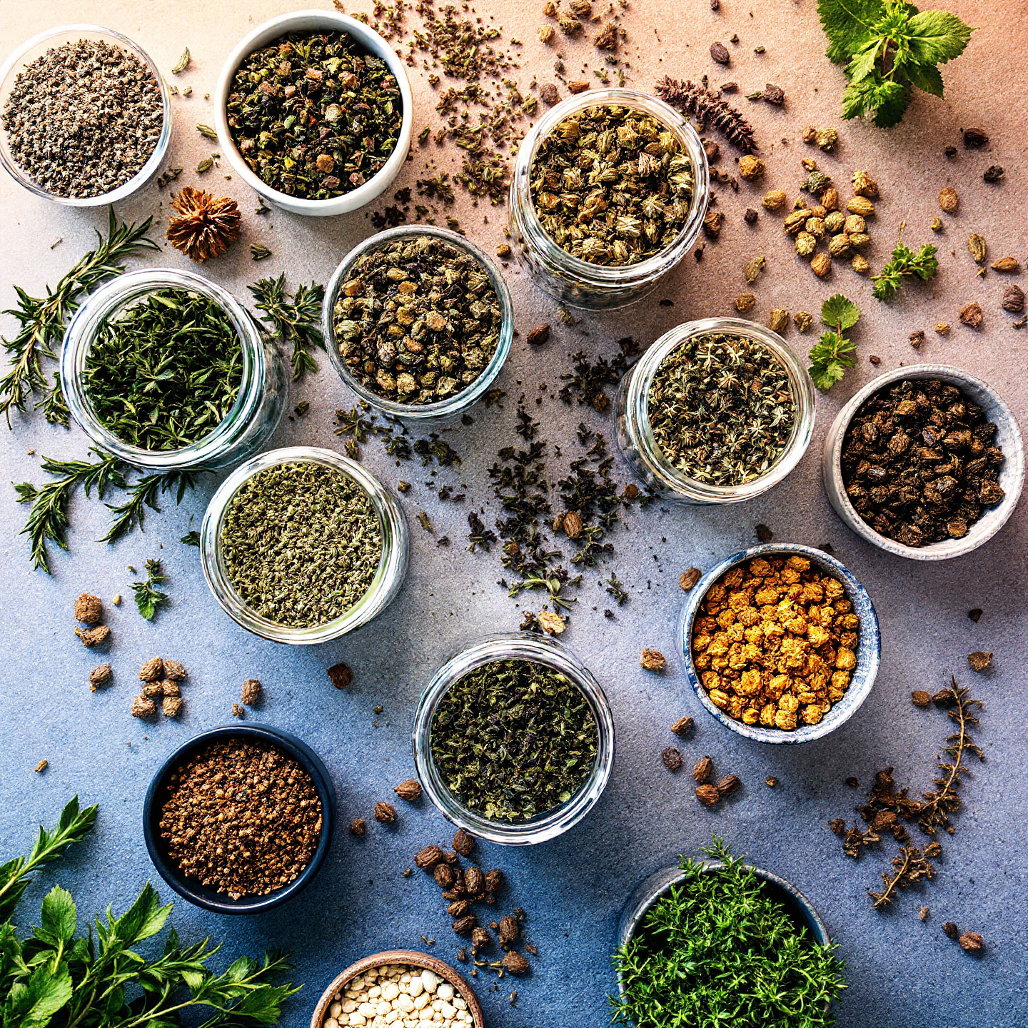 A4. 건조허브는 향이 더 농축돼 있어서 생허브보다 적은 양을 사용해야 해요. 일반적으로 생허브 1큰술 = 건조허브 1작은술로 생각하면 좋아요.