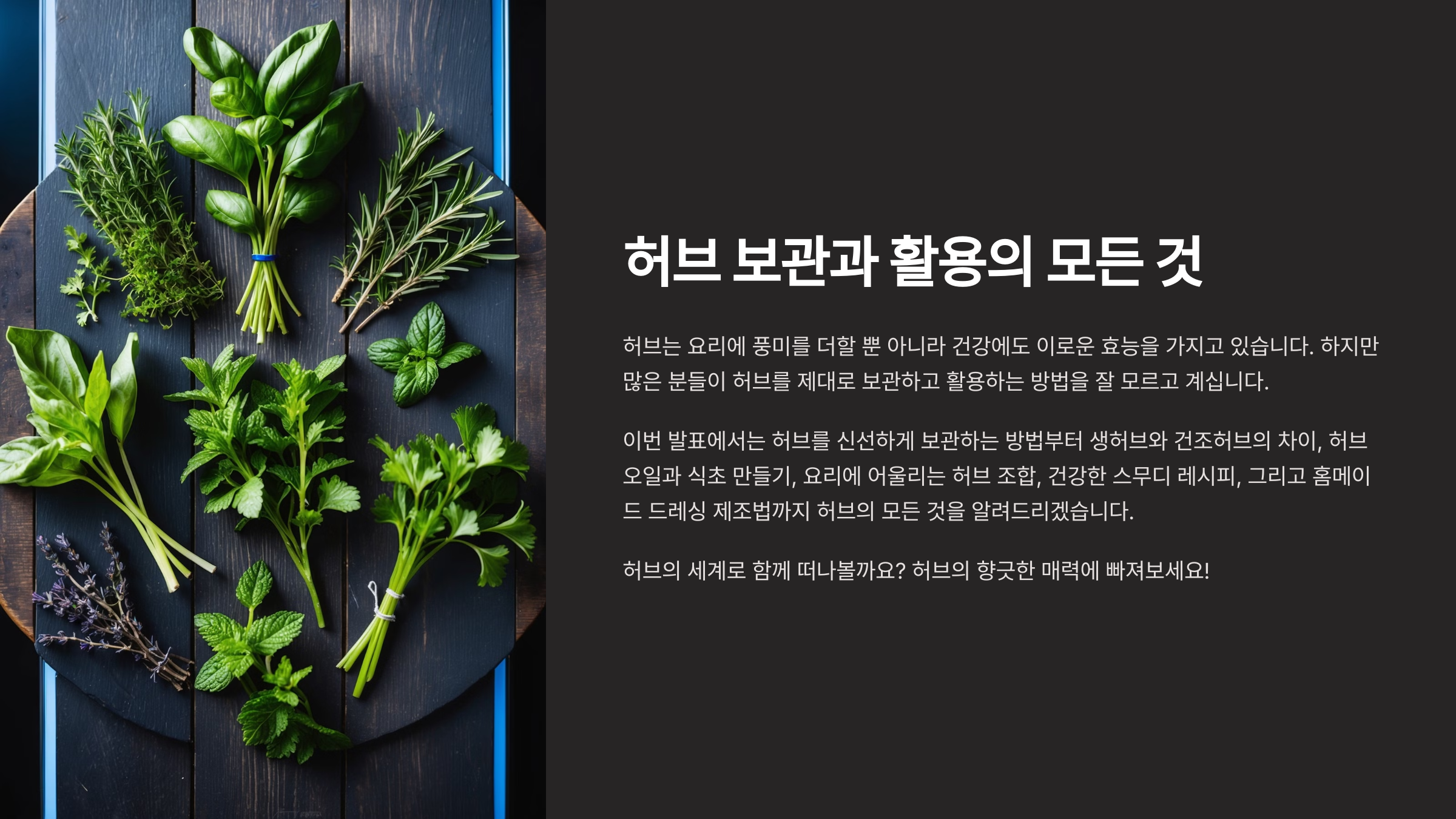 이렇게 해서 허브를 활용하는 모든 비법을 알아봤어요! 다양한 요리부터 음료, 보관법, 드레싱까지 제대로 정리했으니 이제 허브 마스터 되실 준비 되셨죠? 오늘부터 식탁에 향긋함을 더해보세요 🌿