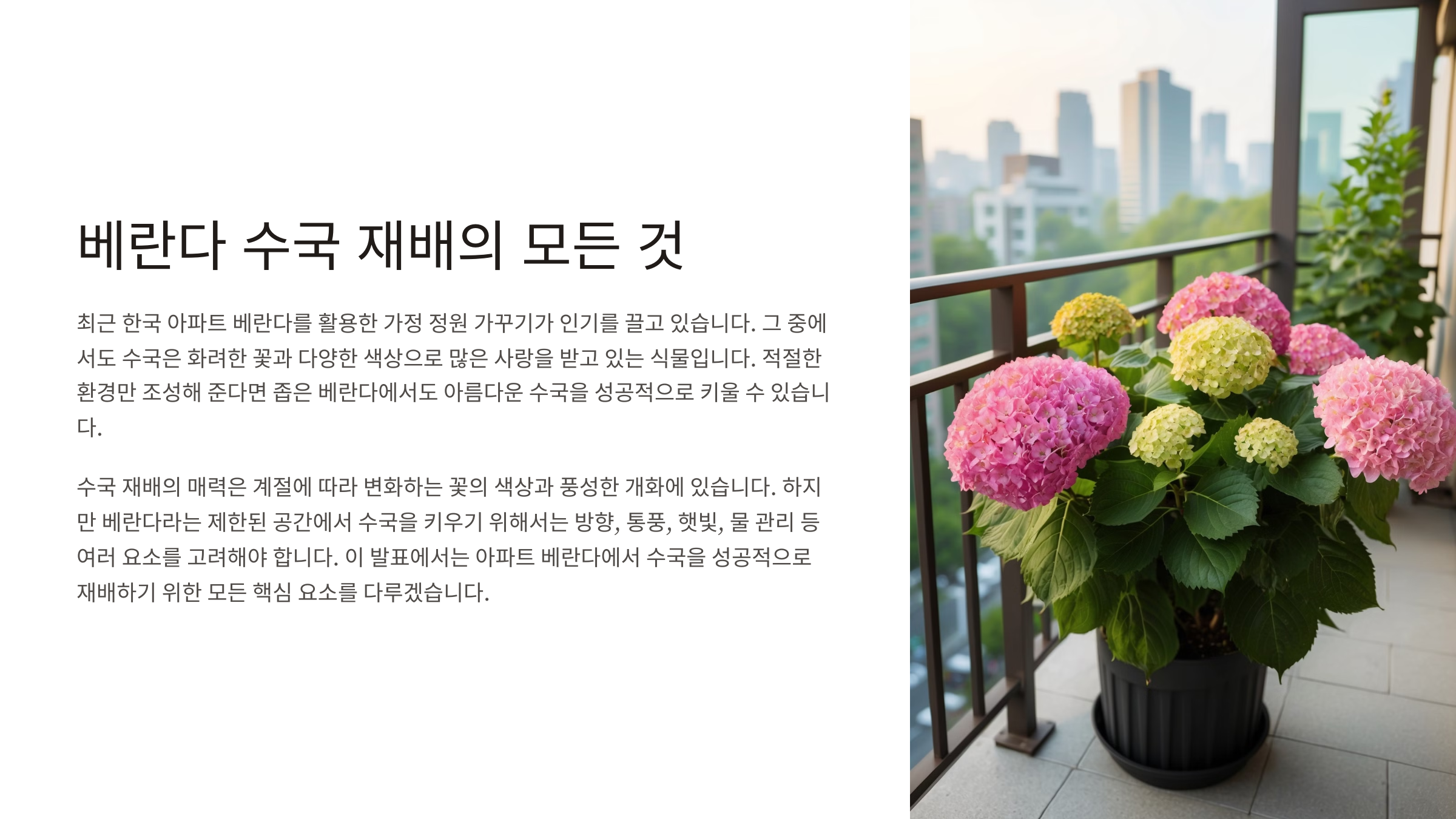 수국을 베란다에서 키워본 분들은 알아요. 꽃은 정말 예쁜데, 공간도 좁고 빛도 애매해서 제대로 피우기 어렵다는 걸요. 그래도 걱정 말아요! 베란다 환경에서도 수국, 충분히 마스터할 수 있어요.
