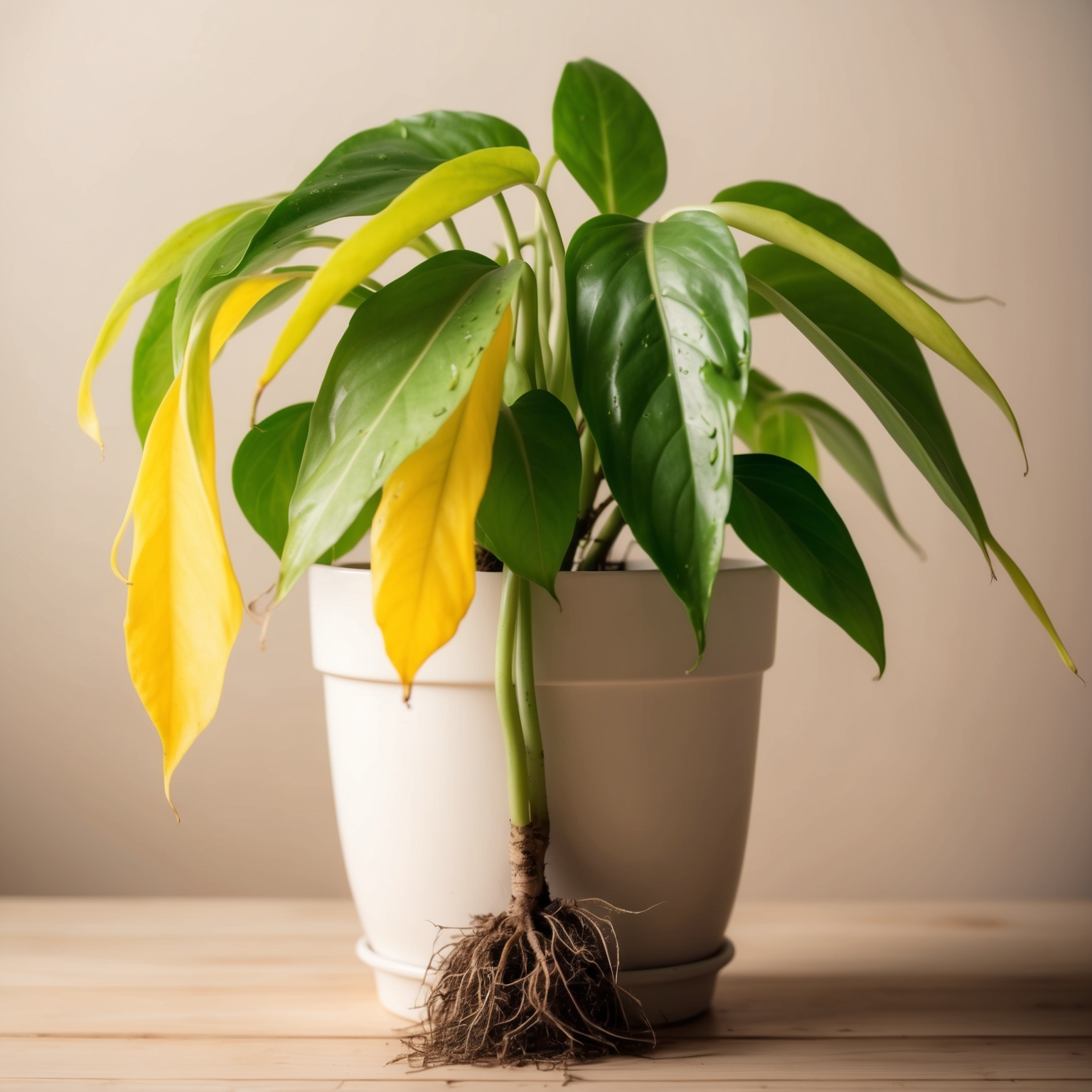 A3. 과습으로 뿌리가 상한 상태일 수 있어요. 물을 멈추고, 흙과 뿌리 상태부터 점검해야 해요.