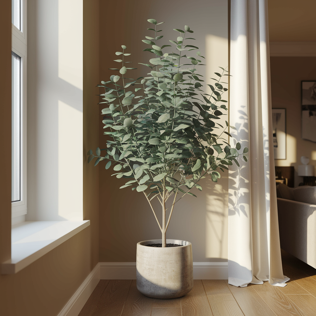공기 순환이 잘 되면 유칼립투스는 뿌리를 통해 수분을 더 활발하게 흡수하고, 잎에서도 활기 있는 색과 향을 보여줘요. 특히 유칼립투스 특유의 향도 공기 흐름이 있을 때 더 잘 퍼지고, 공간 전체가 상쾌해진답니다 🌬️