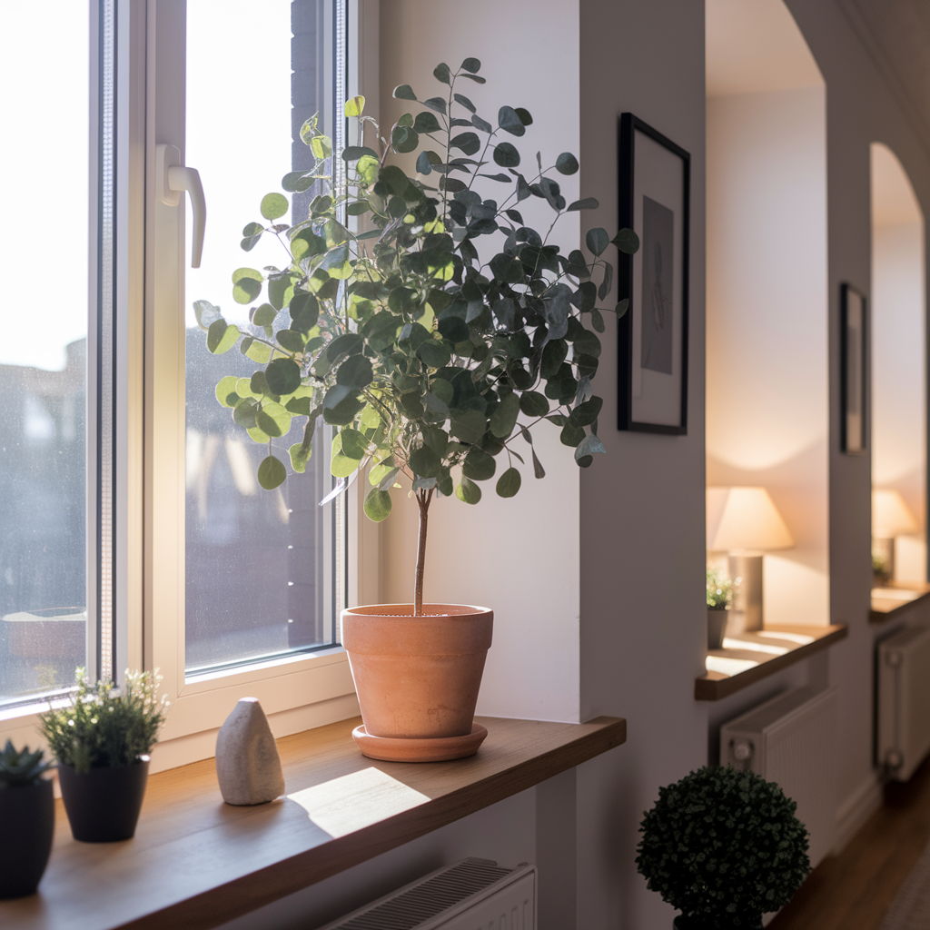 유칼립투스는 빛을 정말 좋아하는 식물이기 때문에, 실내에서도 ‘어느 창문 옆에 두느냐’에 따라 물의 필요량이 완전히 달라져요. 창문 위치는 곧 햇빛 강도, 공기 순환, 흙 마르는 속도를 결정하는 중요한 요소예요.