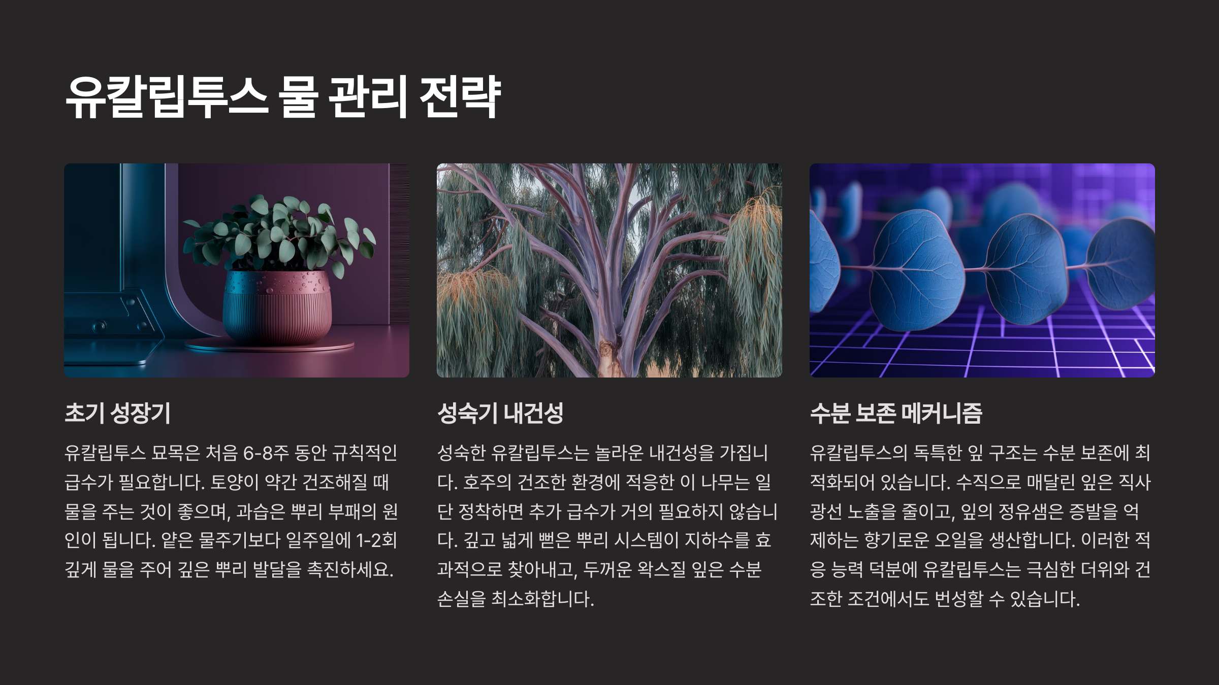 유칼립투스 생장단계별 물관리 전략