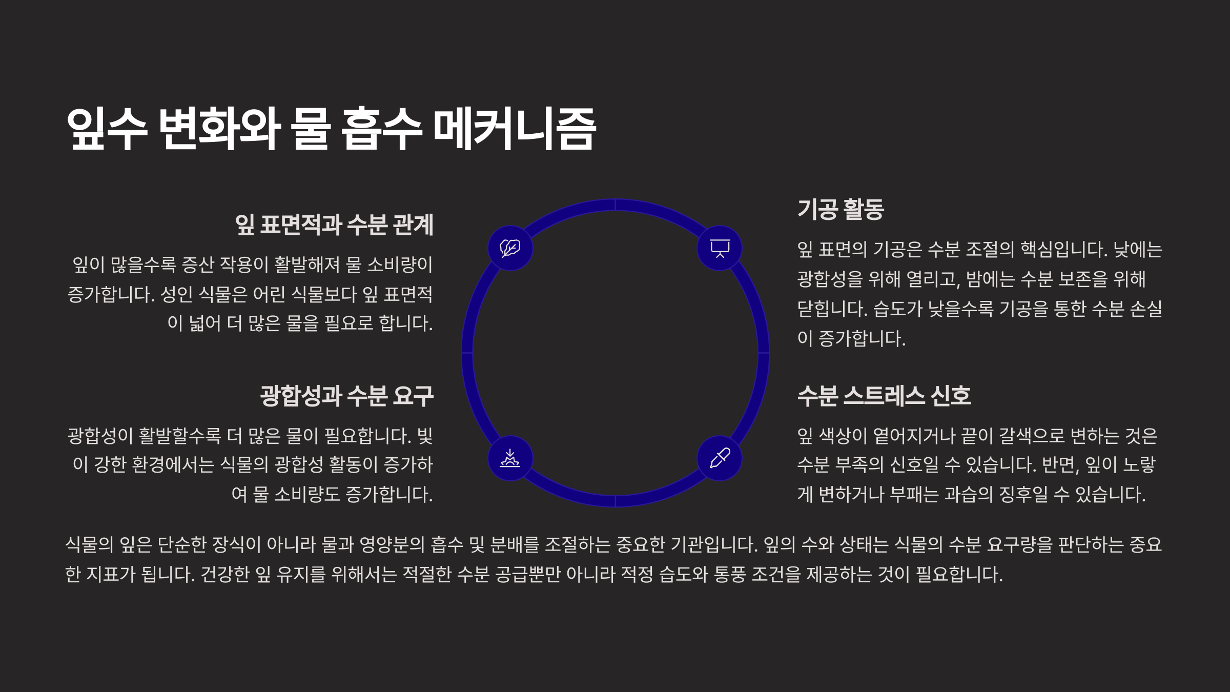 🧵 잎과 물 흡수의 관계 요약표