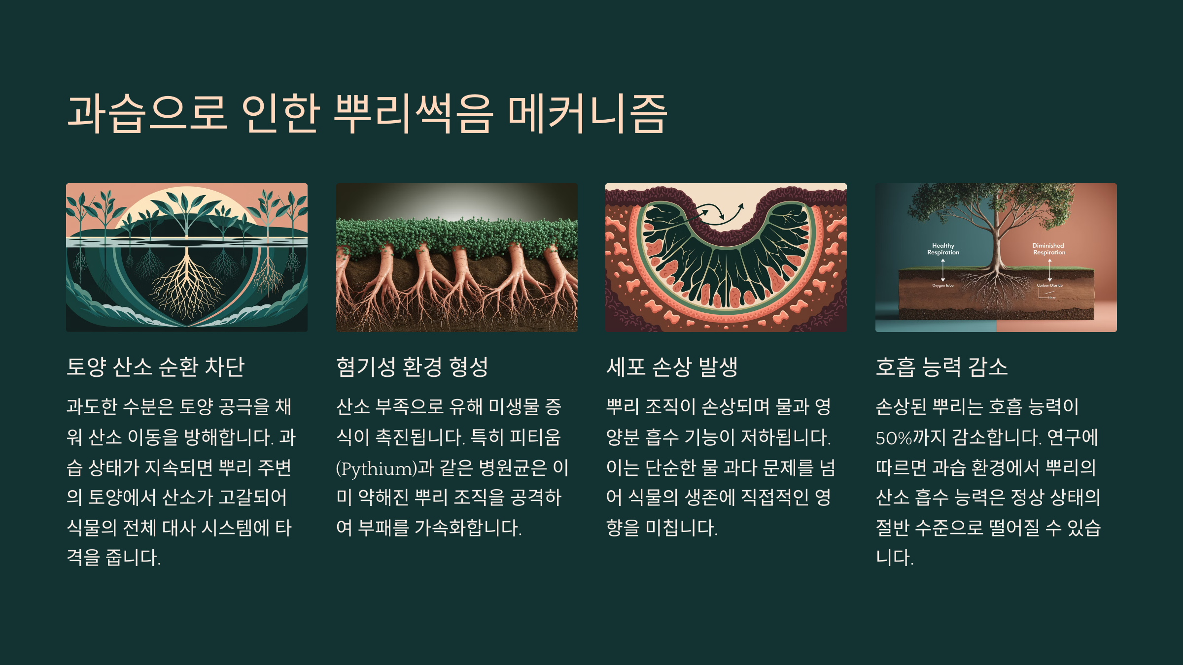 뿌리가 숨을 못 쉬면, 그 안에 세균과 곰팡이가 번식하면서 뿌리가 썩기 시작해요. 이런 경우에는 흙을 갈아줘도, 뿌리 일부가 이미 손상됐기 때문에 회복이 쉽지 않아요. 과습은 '조용한 살인자' 같은 존재예요.