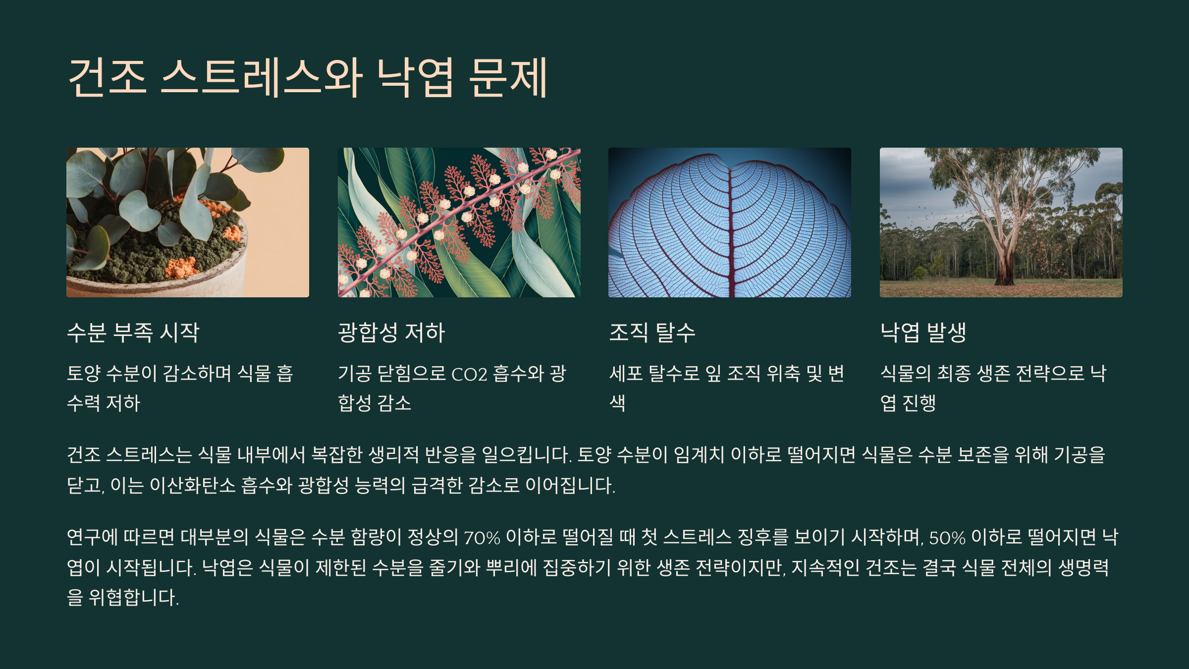 잎 낙엽 후 새순 없음 지속된 건조 스트레스 환경 점검 + 회복기 제공