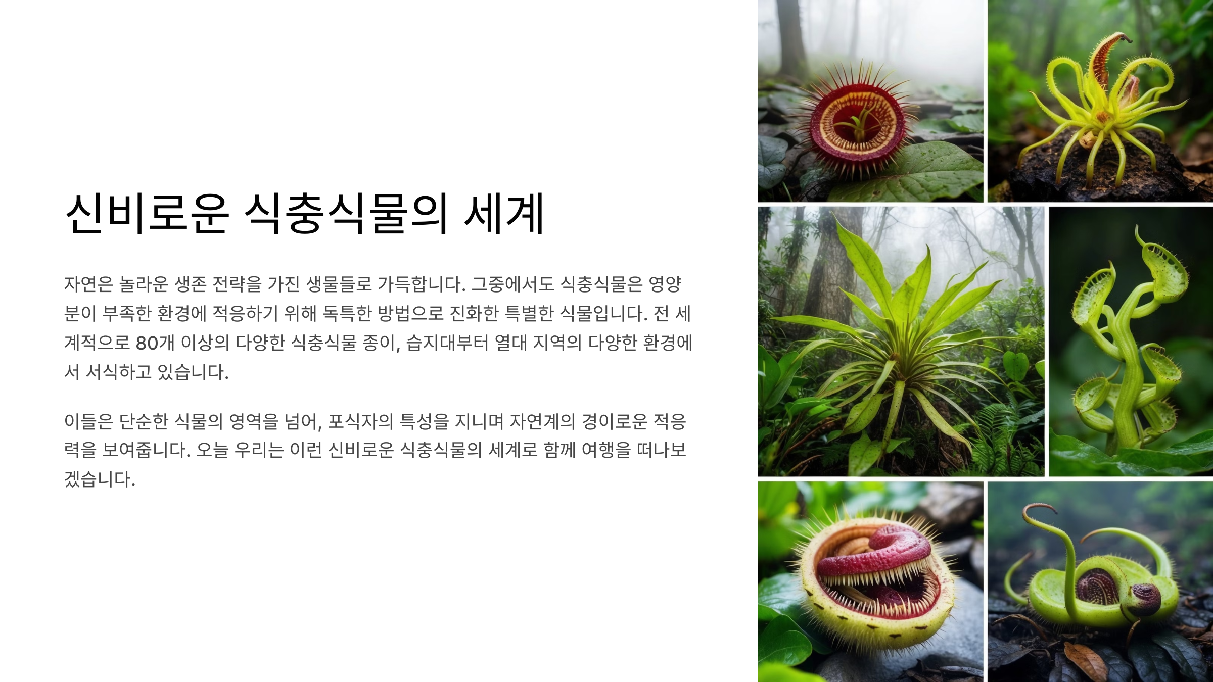 끈끈한 점액으로, 미끄러운 항아리로, 혹은 번쩍 닫히는 잎으로! 식충식물마다 벌레를 유인하고 사냥하는 방식이 완전히 달라요. 알고 보면 진짜 신기한 포식 식물들의 세계예요.