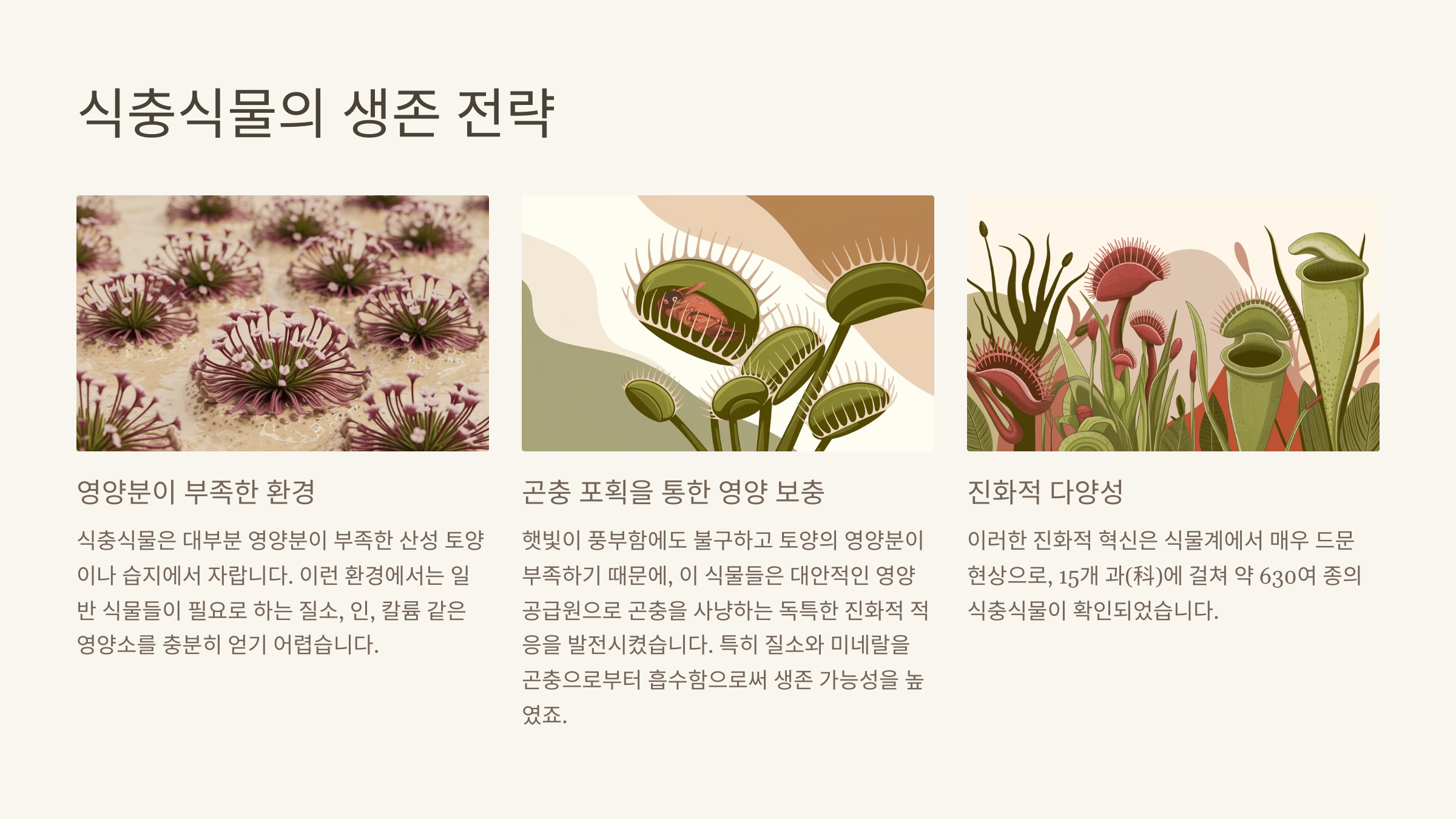 식충식물은 단순히 신기한 식물 그 이상이에요. 벌레를 잡아먹는 독특한 방식으로 살아가는 이 친구들은 일반 식물과는 전혀 다른 환경 조건을 필요로 해요. 특히 햇빛보다 중요한 건 바로 ‘먹이’인 벌레예요!