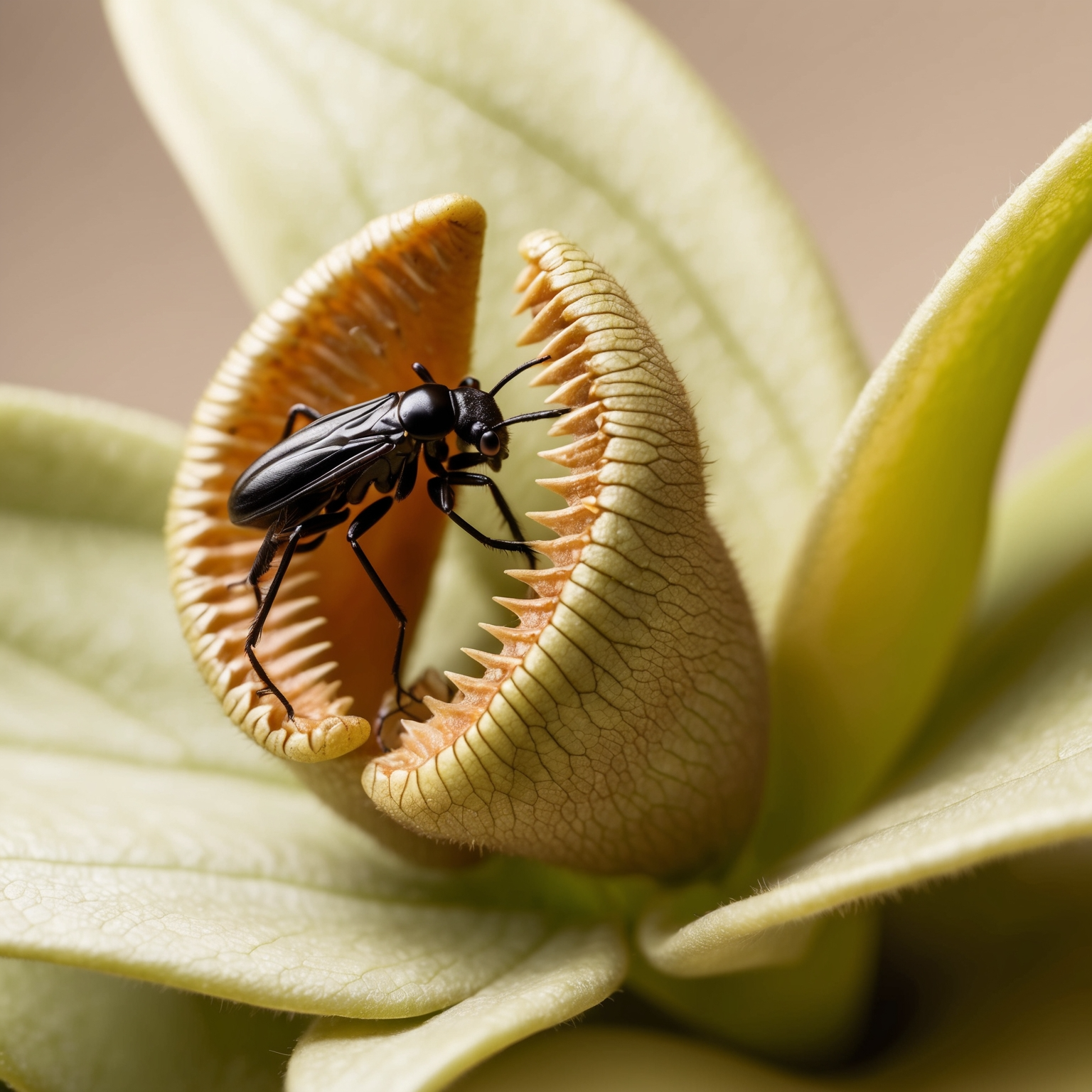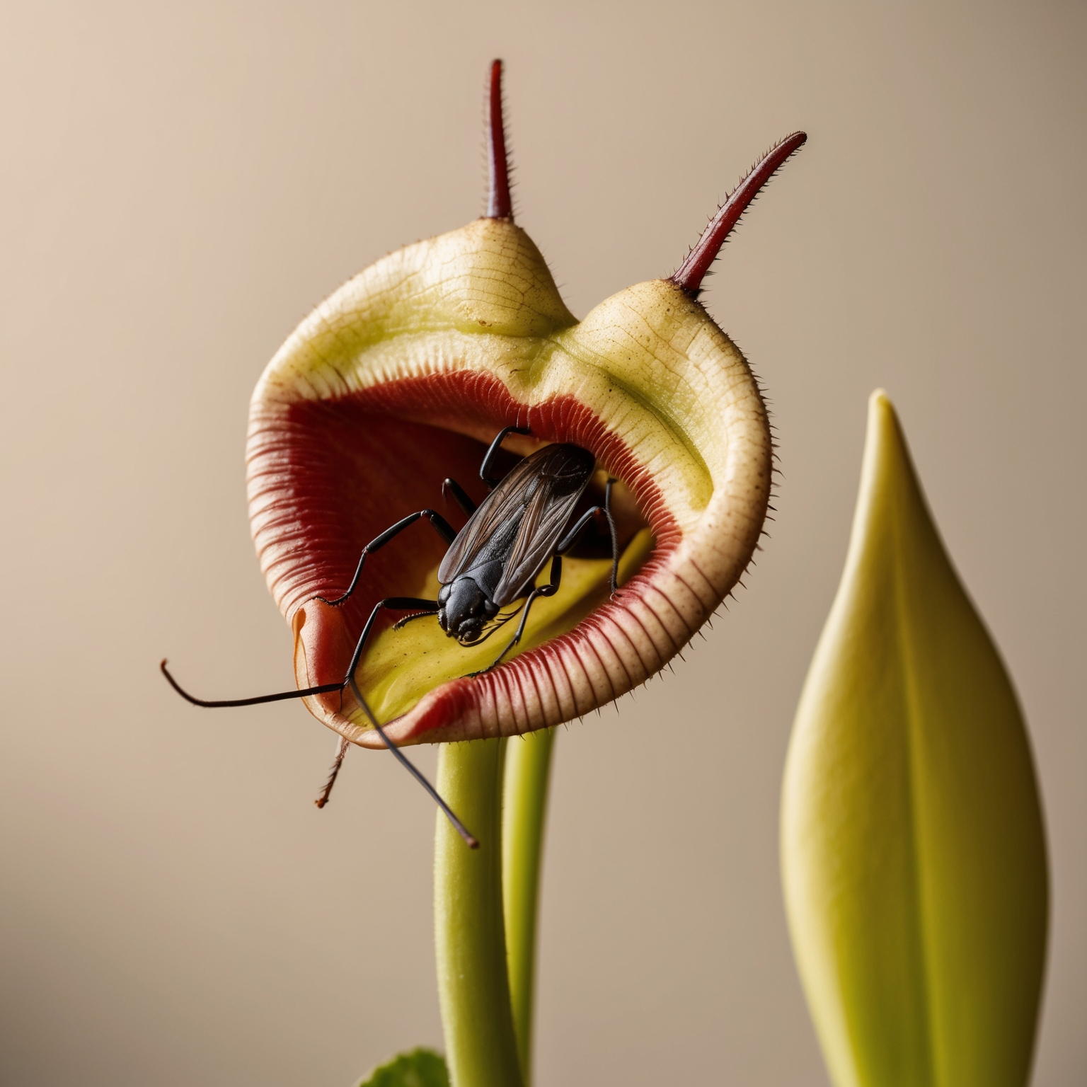 또 있어요! **함정형 포획**도 있어요. 대표적인 네펜데스(Nepenthes)는 잎 끝에 항아리 모양의 함정을 만들어요. 벌레가 향기에 이끌려 항아리 안으로 들어가면 미끄러져 빠지고, 미끈한 벽과 소화액 때문에 다시는 나오지 못해요. 이건 거의 식물계의 유리벽 미로 같아요.