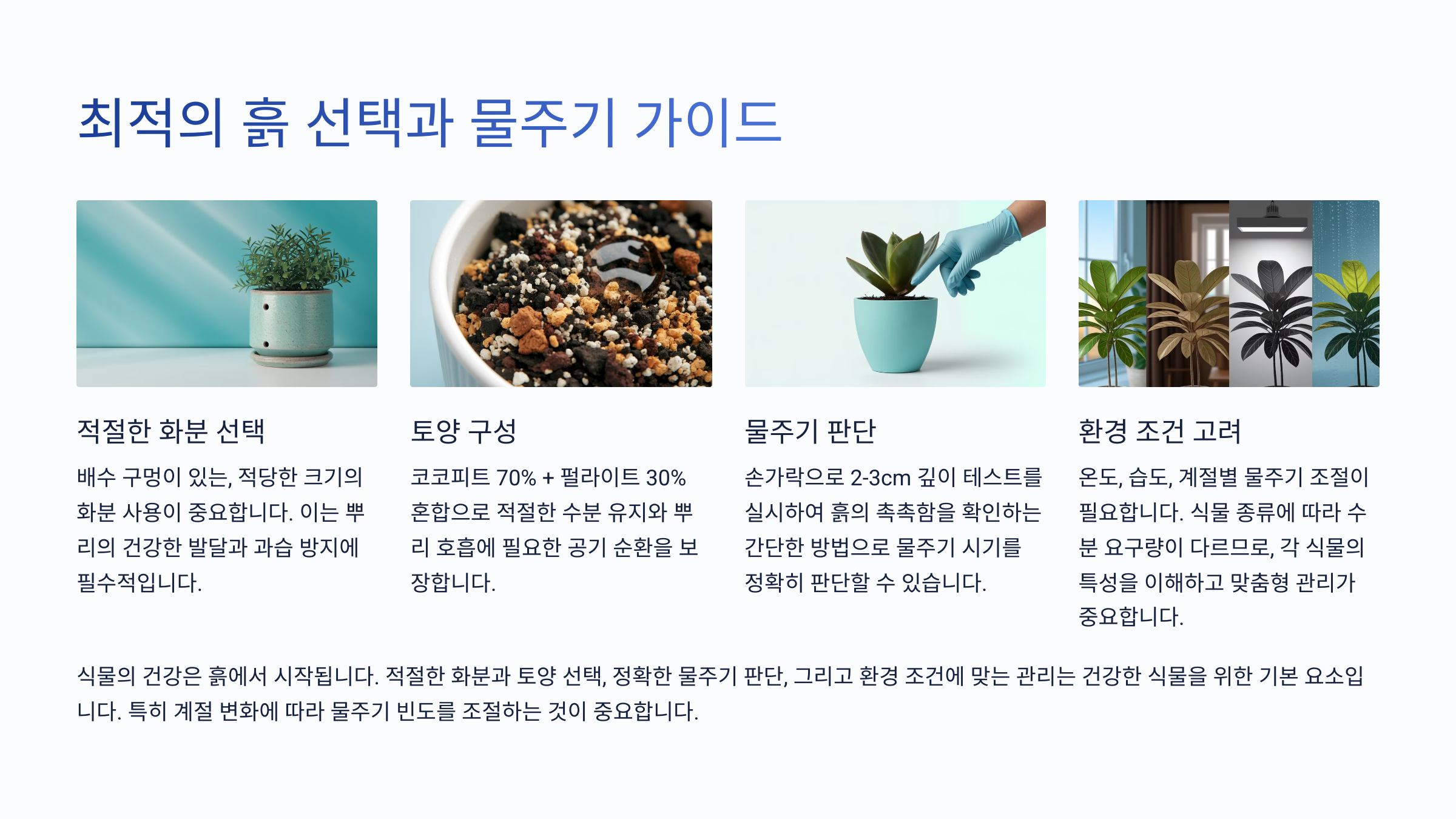 1. **배수구 있는 화분 사용** – 기본 중의 기본이에요. 바닥에 구멍이 없는 화분은 장식용으로만 쓰고, 실제 식물은 반드시 구멍이 있는 화분에 심어야 해요.