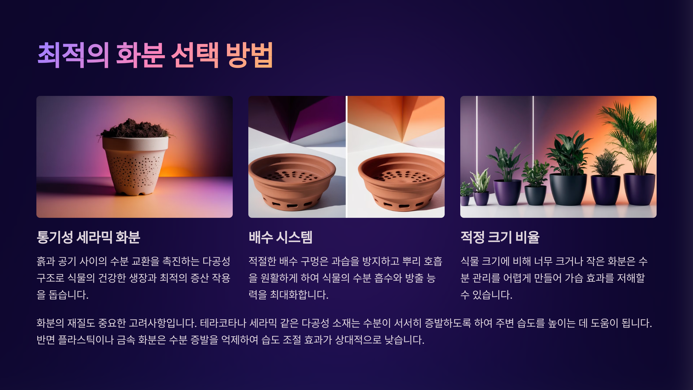 수분 증발 높은 화분 선택 🪴