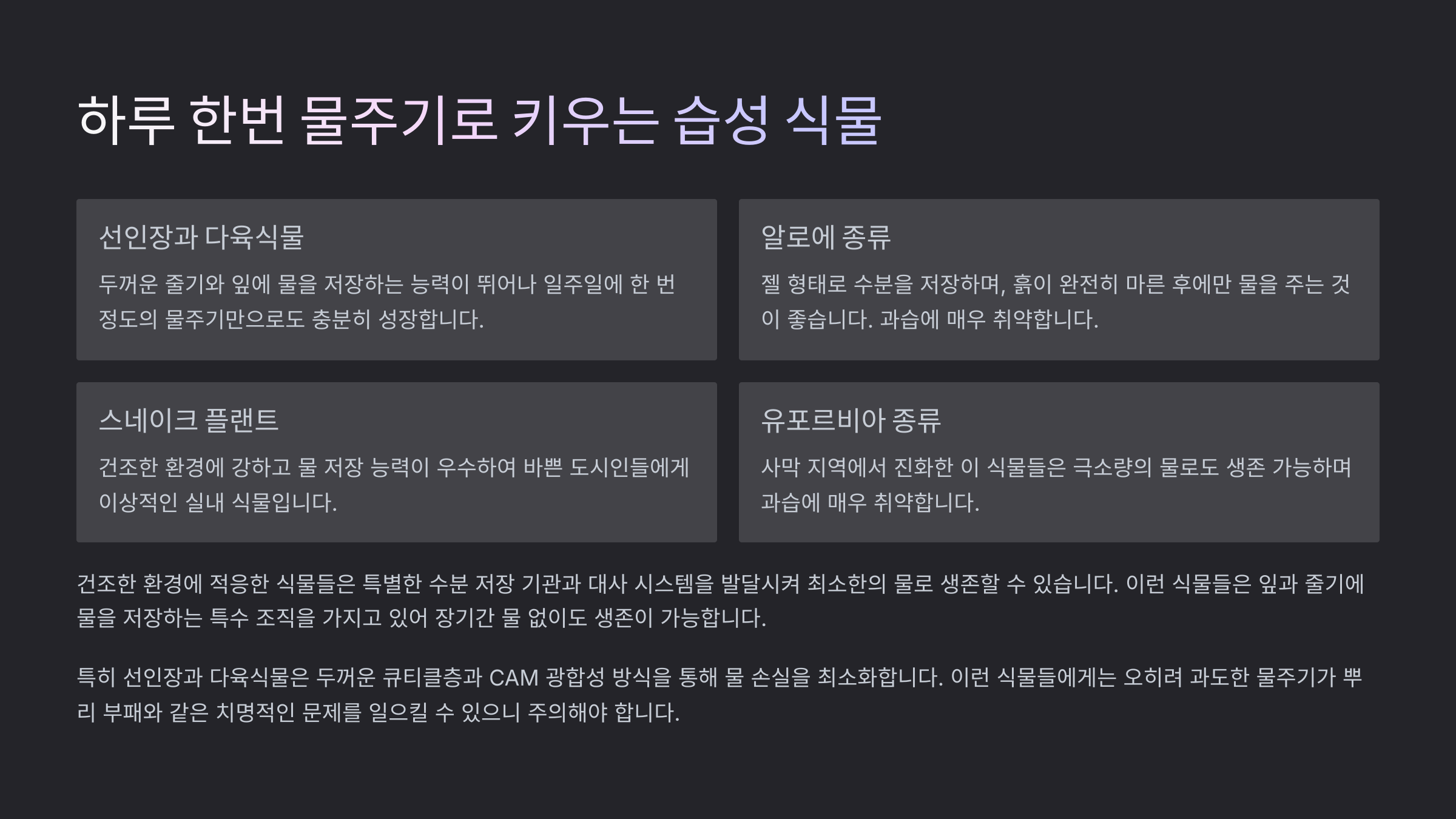 하루 물주기로 키우는 습성 식물 🌿