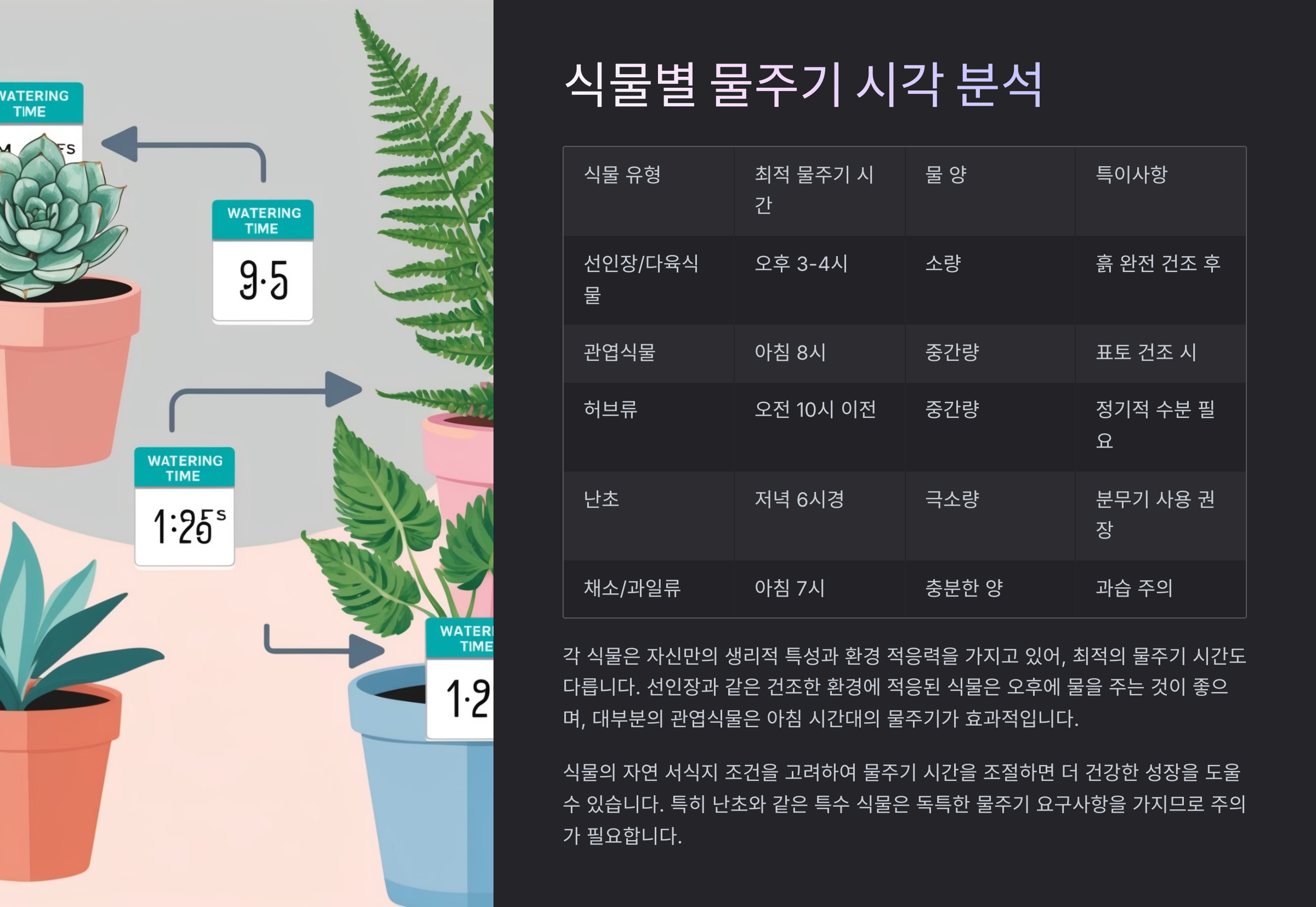 식물별 물주기 시각 분석 🕘