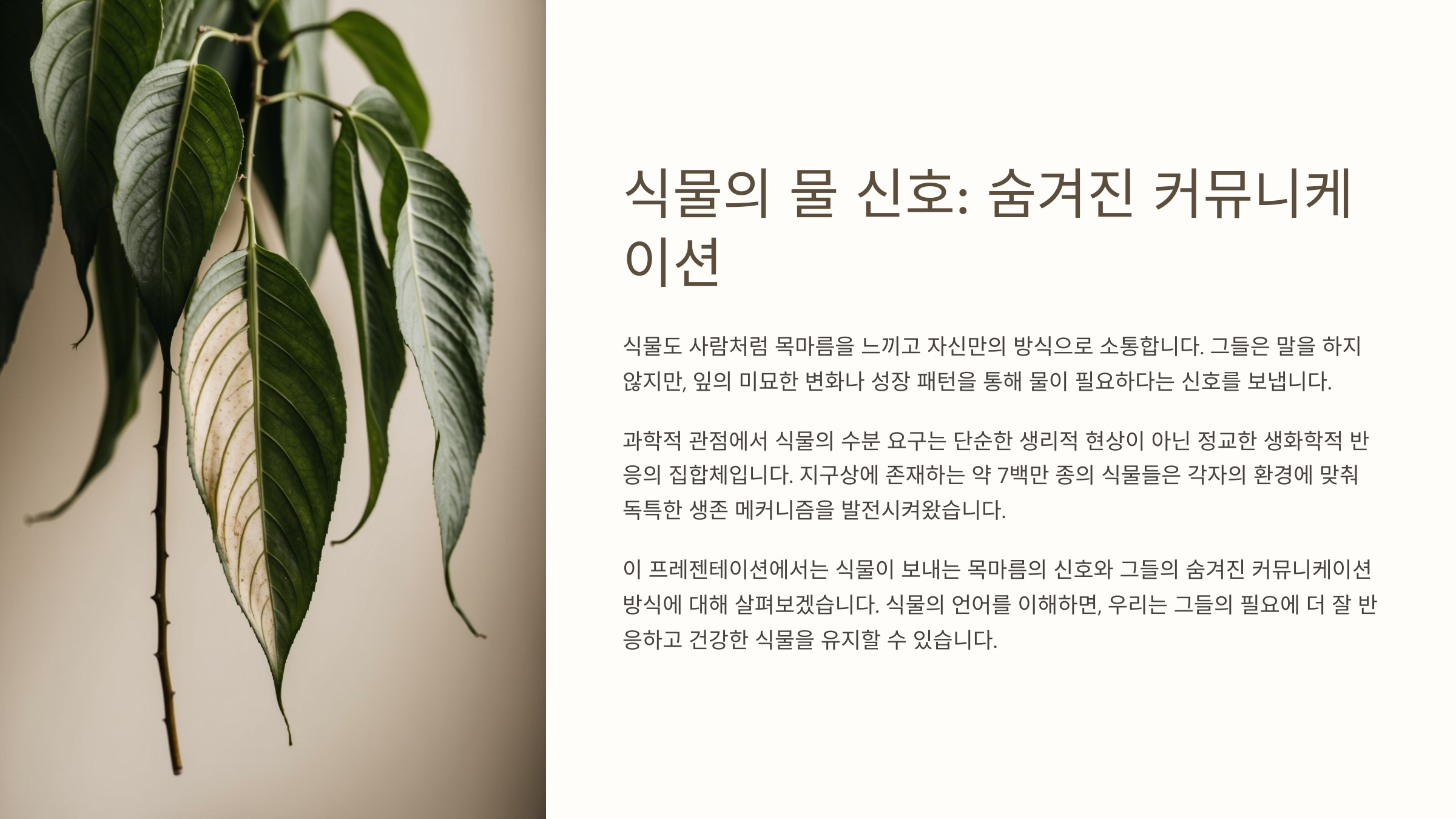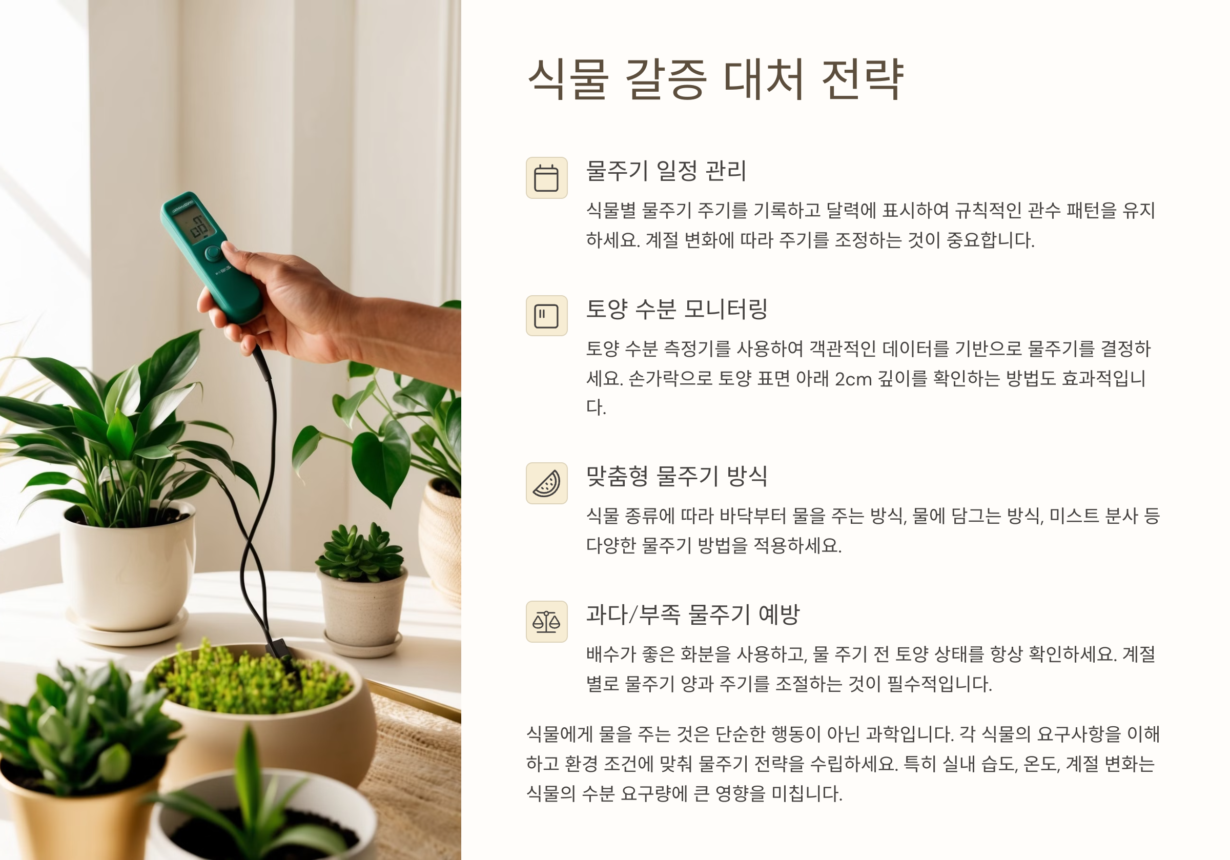 식물의 '물 달라는 행동'은 곧 생명의 언어예요. 그런 행동을 놓치지 않는 섬세함이 식물과의 교감을 더 깊게 만들어줘요 💚