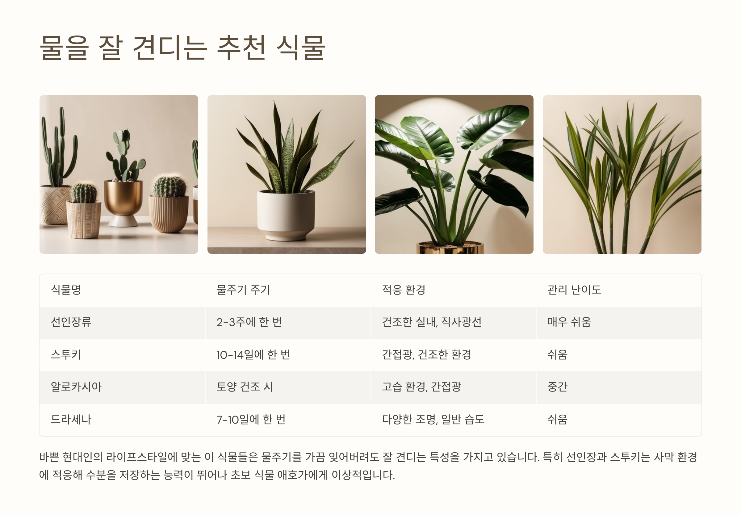 이처럼 식물마다 물을 기다리는 방식은 다르지만, 그 메시지를 한 번 눈에 익혀두면 언제 물을 줘야 할지 자연스럽게 감이 와요 😊