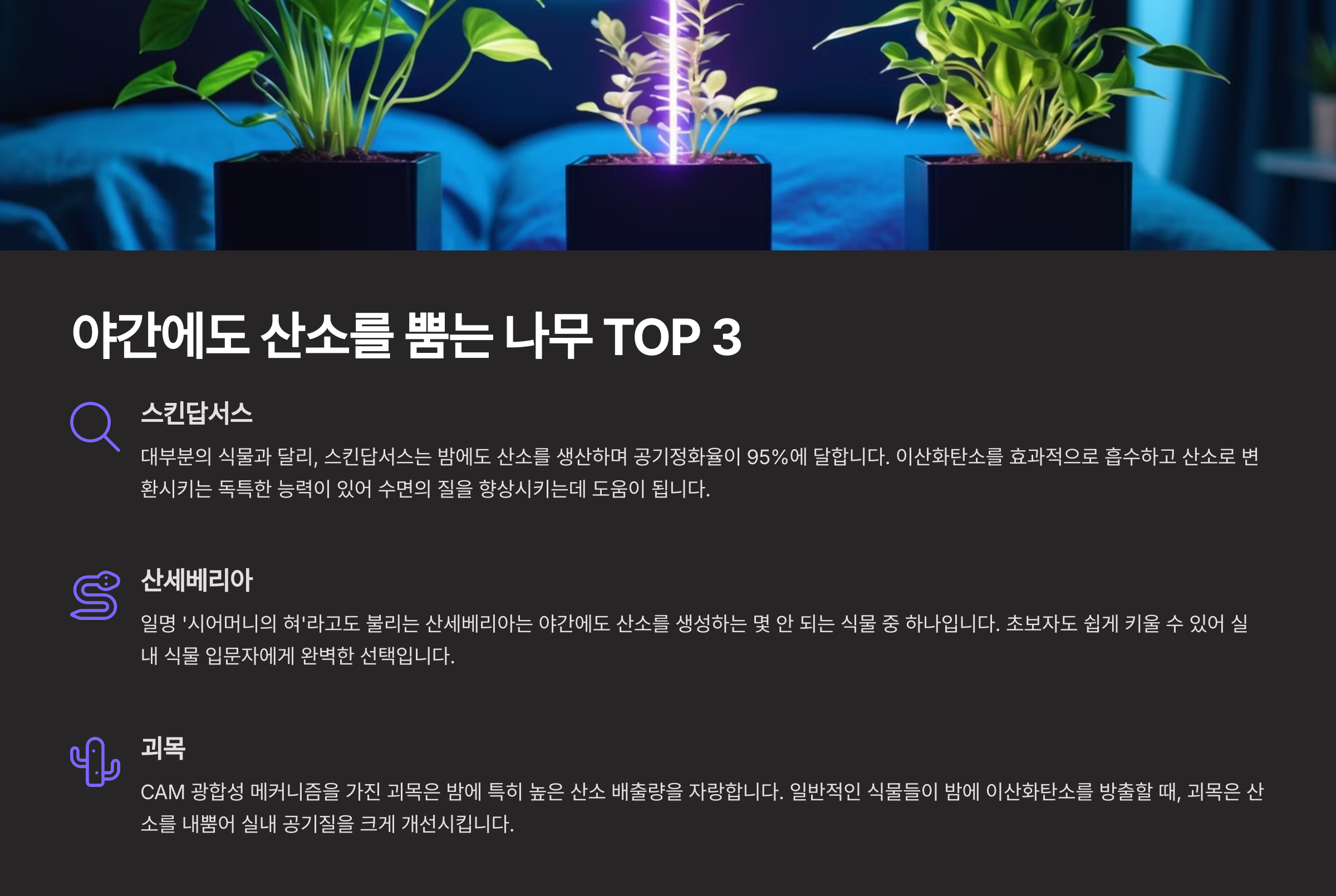 이처럼 밤에도 산소를 만들어주는 식물은 숙면을 유도하는 데 큰 도움을 줘요. 자연적인 산소 공급이 필요한 공간이라면 꼭 한두 개쯤 들여보는 걸 추천해요 💤