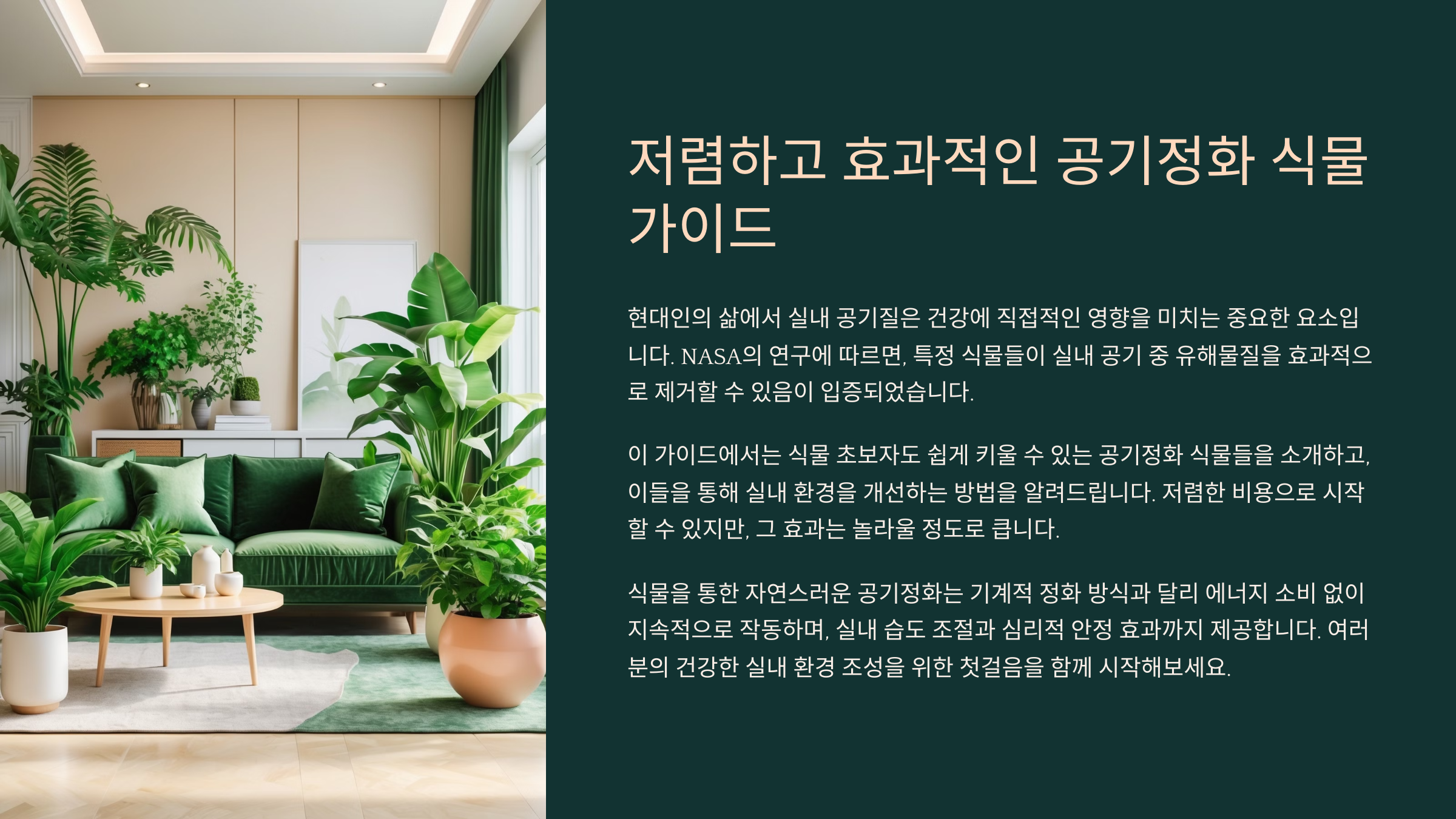 공기정화 식물이라고 하면 고급스럽고 비쌀 것 같지만, 사실 누구나 부담 없이 살 수 있는 저렴한 식물도 많아요. 가격은 저렴해도 효과는 절대 가볍지 않답니다 🌿