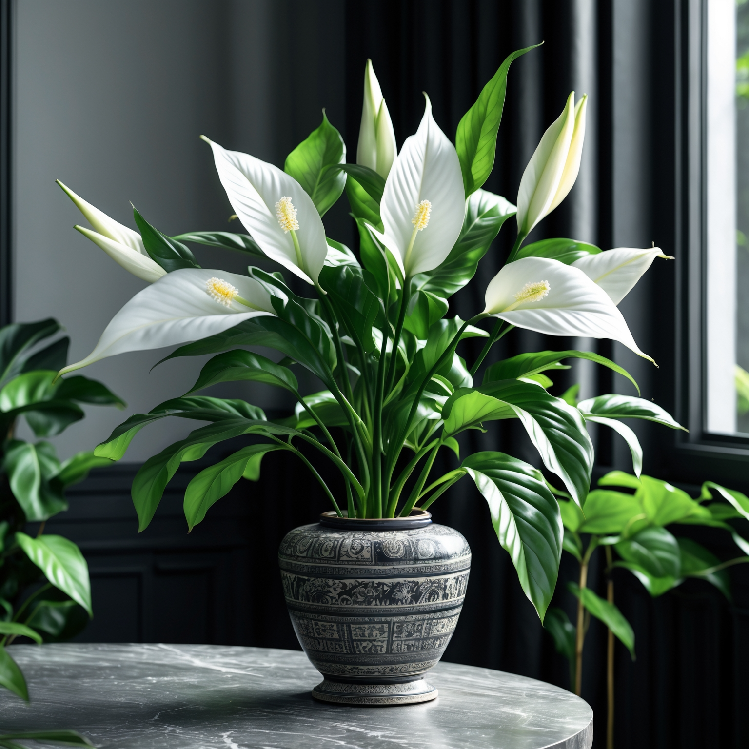 스파티필럼은 NASA 인증 공기정화 식물로, 꽃과 잎 모두 시선을 사로잡아요. 거실 테이블 위에 하나 놓으면 공간이 훨씬 생기 있어 보여요 ✨