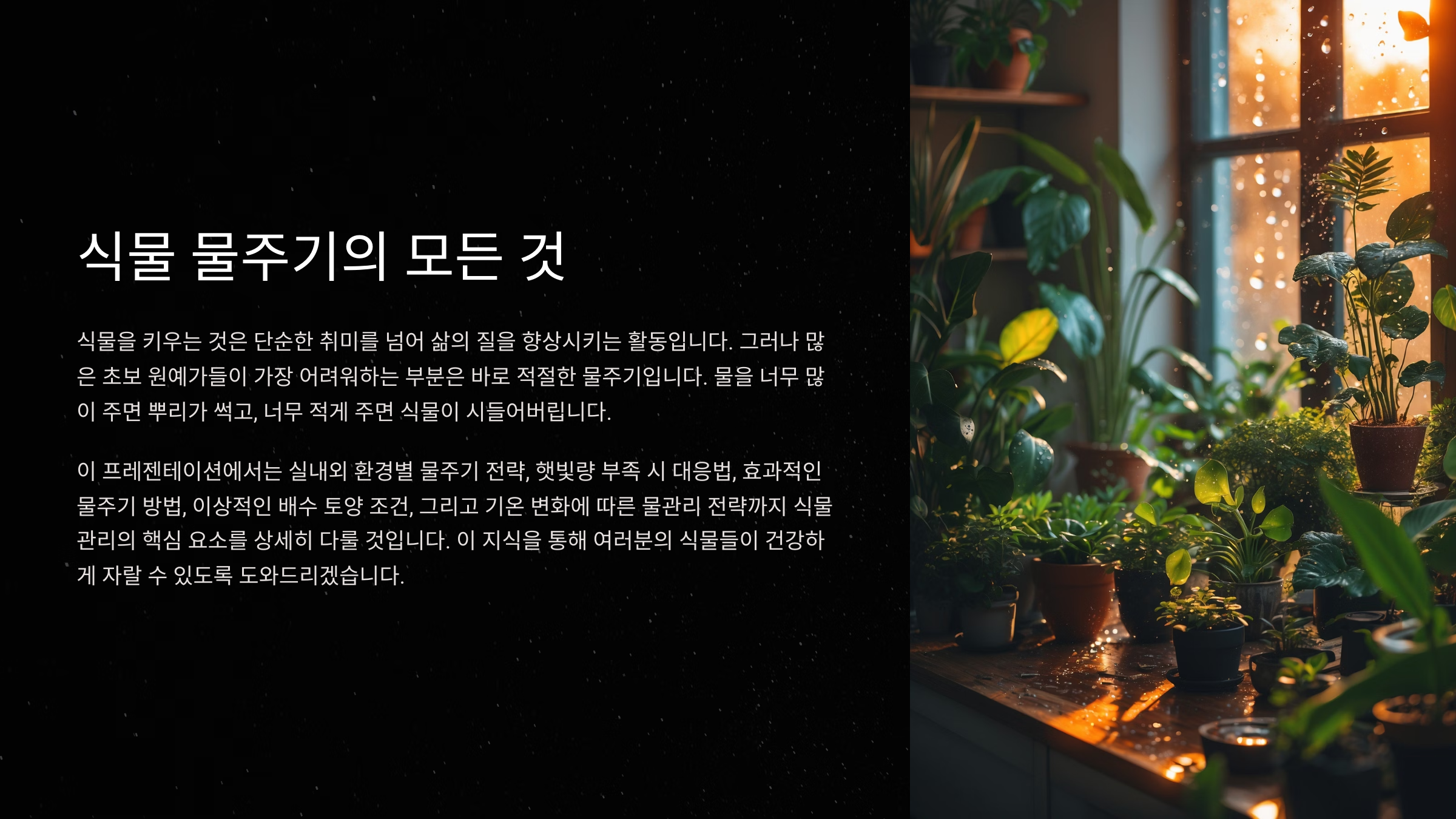 | 흙에 직접 물주기 | 뿌리까지 수분 도달 | 배수 불량 시 과습 위험 |