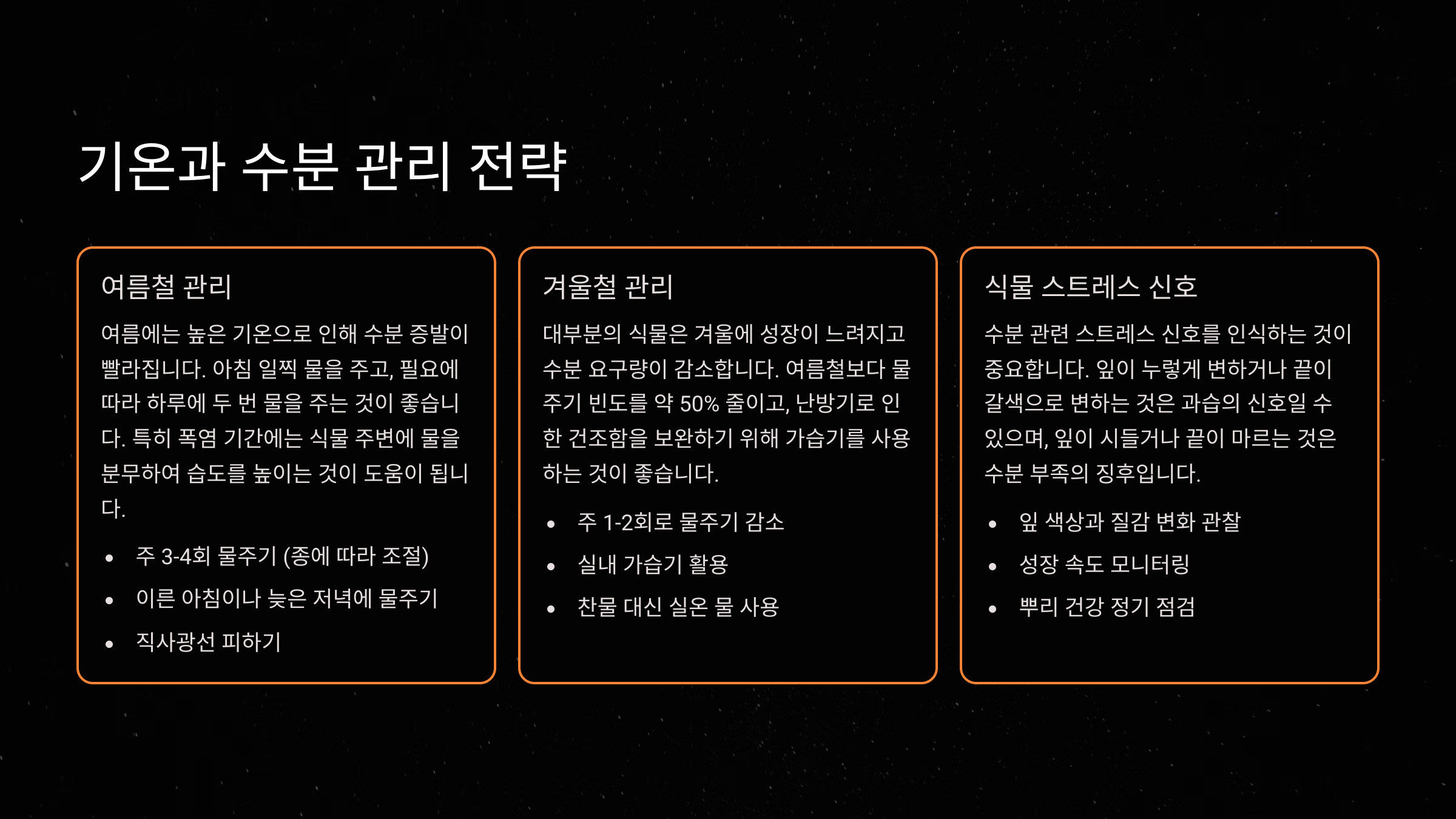| 계절 | 적정 온도 | 물주기 주기 |
