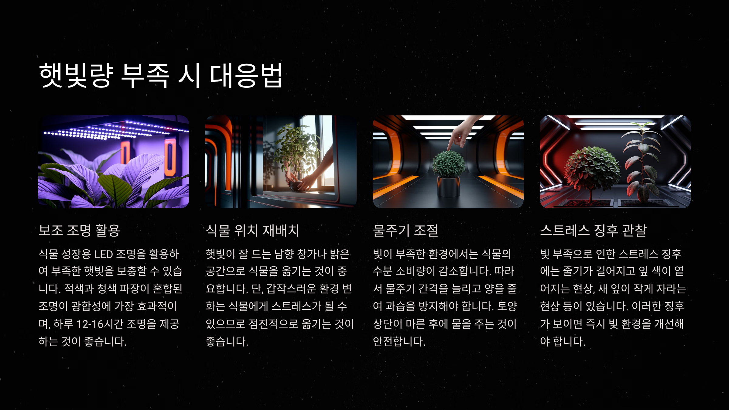 A4. 풀 스펙트럼 LED 조명을 8시간 이상 사용해보세요. 효과 있어요!