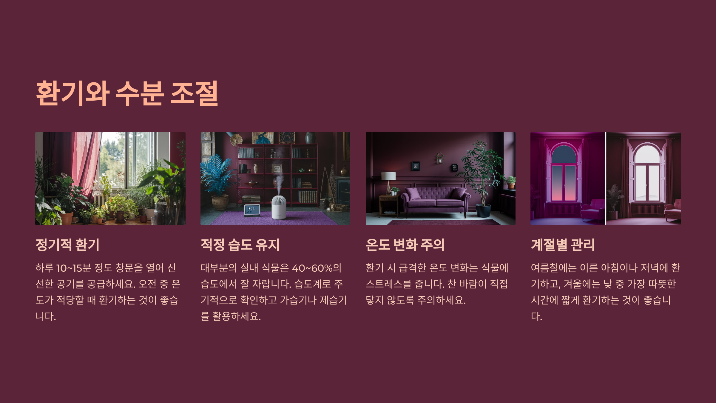 햇빛이 부족한 실내에서 물을 조절하려면 환기와 통풍이 정말 중요해요. 공기가 정체되면 흙이 마르지 않고, 그 상태에서 물을 더 주면 뿌리가 바로 손상될 수 있거든요. 🌀