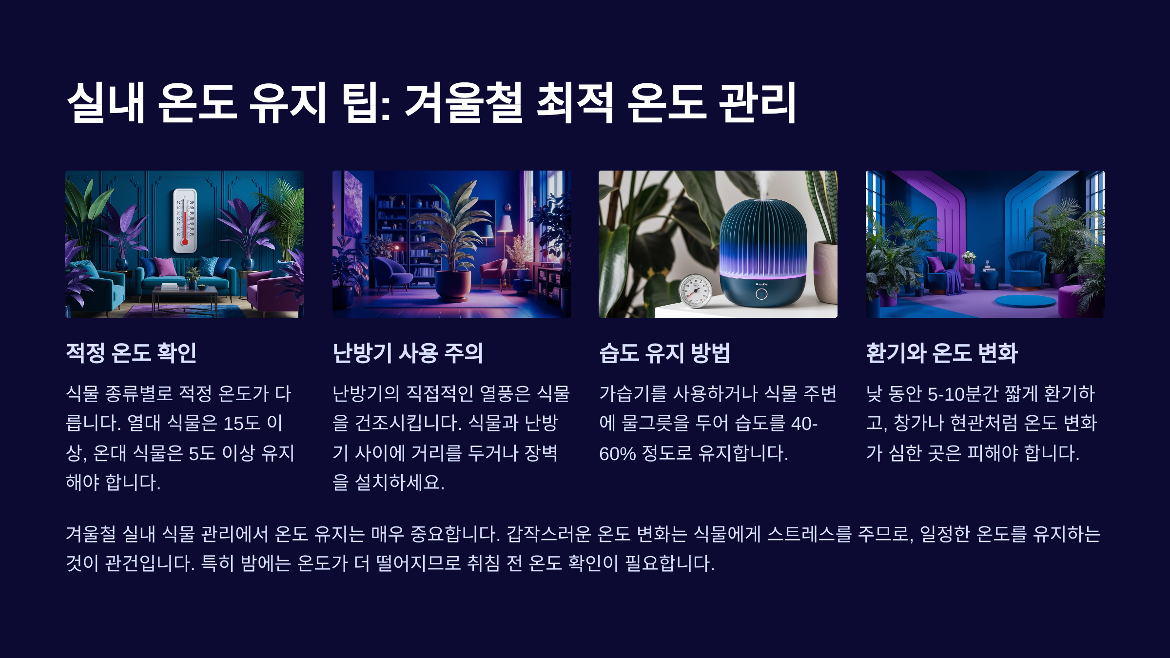 따라서 겨울철엔 ‘물은 최대한 적게’, ‘건조한 흙 유지’가 가장 중요한 관리법이에요. 그리고 물보다 온도와 빛이 훨씬 더 중요한 요소가 된답니다. 🌡️