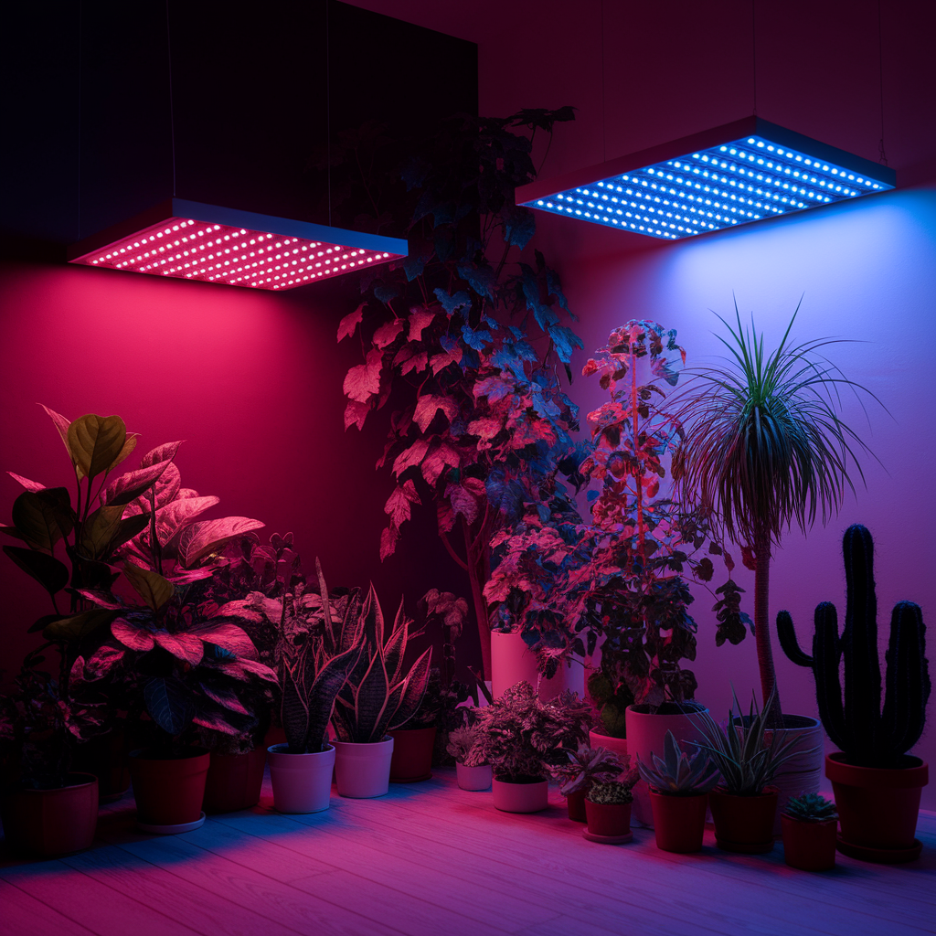 LED 식물등은 에너지 효율도 좋고 열도 많이 발생하지 않아서 집안에서도 안전하게 사용할 수 있어요. 특히 블루(청색)와 레드(적색) 파장이 포함된 조명은 광합성에 도움을 주기 때문에 식물들이 더 건강하게 자랄 수 있도록 도와줘요.