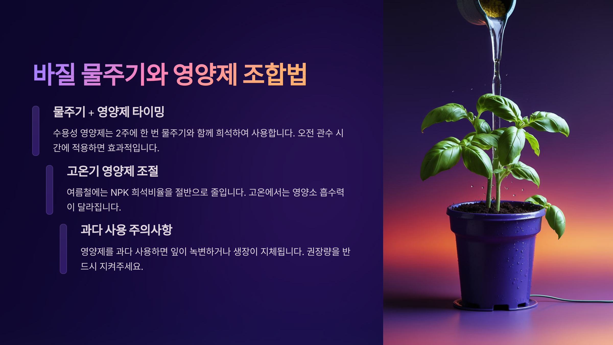 🧴 바질 물주기 + 영양제 조합 요령 💡