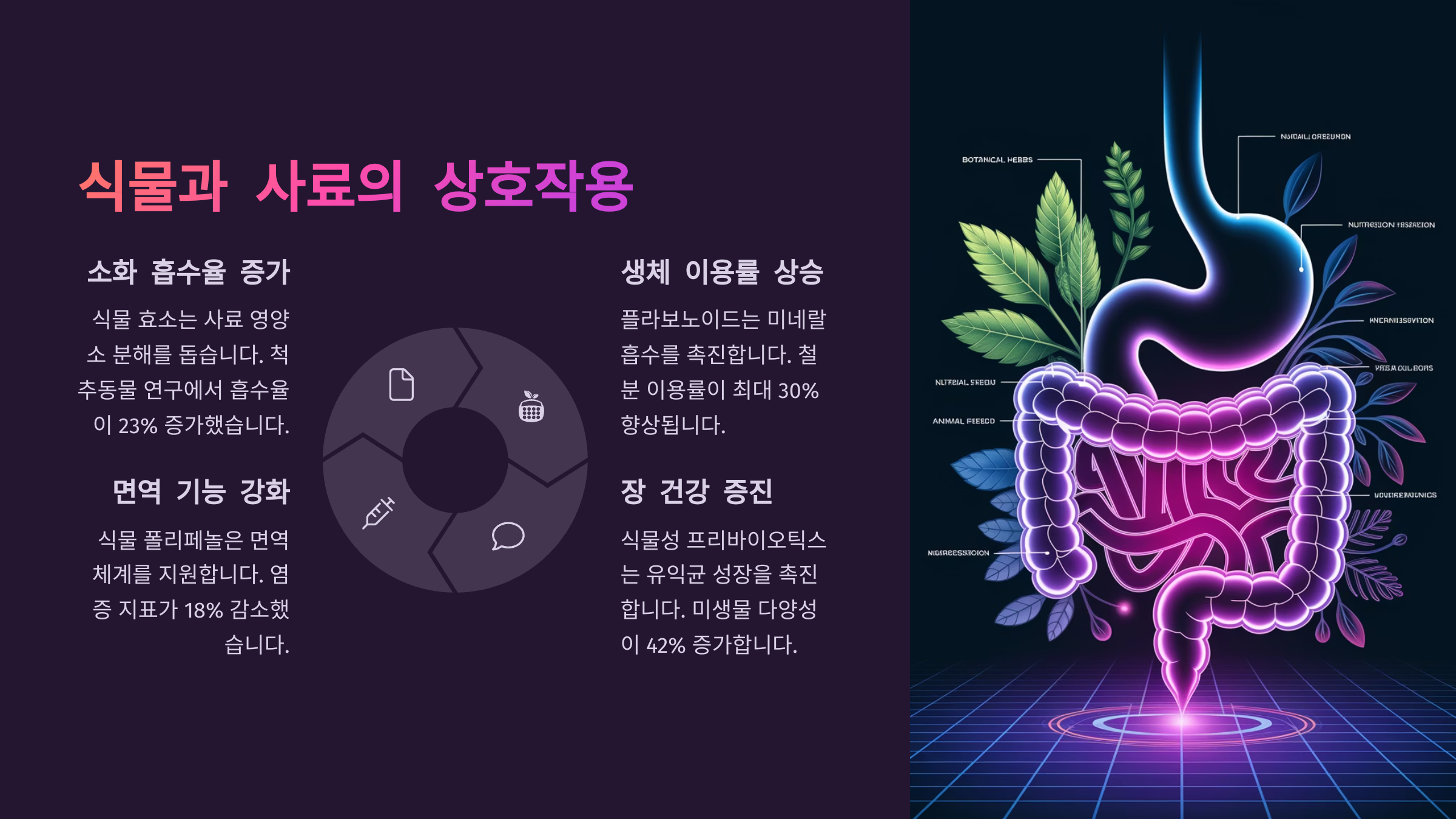 이제 식물의 비타민 효과까지 알았으니, 다음은 사료와 식물이 함께 작용할 때 일어나는 **상호작용**에 대해 살펴볼 차례예요!