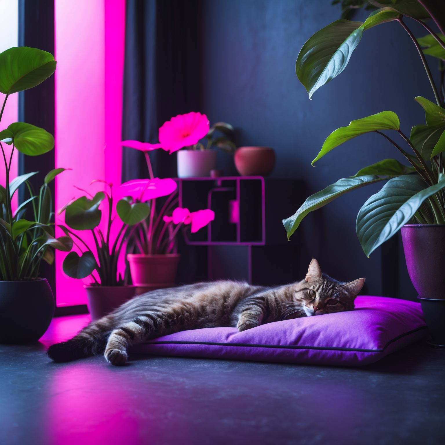 마지막은 **중립 컬러와 식물의 조화**예요. 베이지, 화이트, 올리브그린 같은 자연 색상은 고양이와 식물 모두를 돋보이게 해주는 배경이에요. 여기에 중간 톤 우드 가구를 섞으면 자연과 반려동물, 인간이 어우러지는 감성적인 공간이 완성돼요.