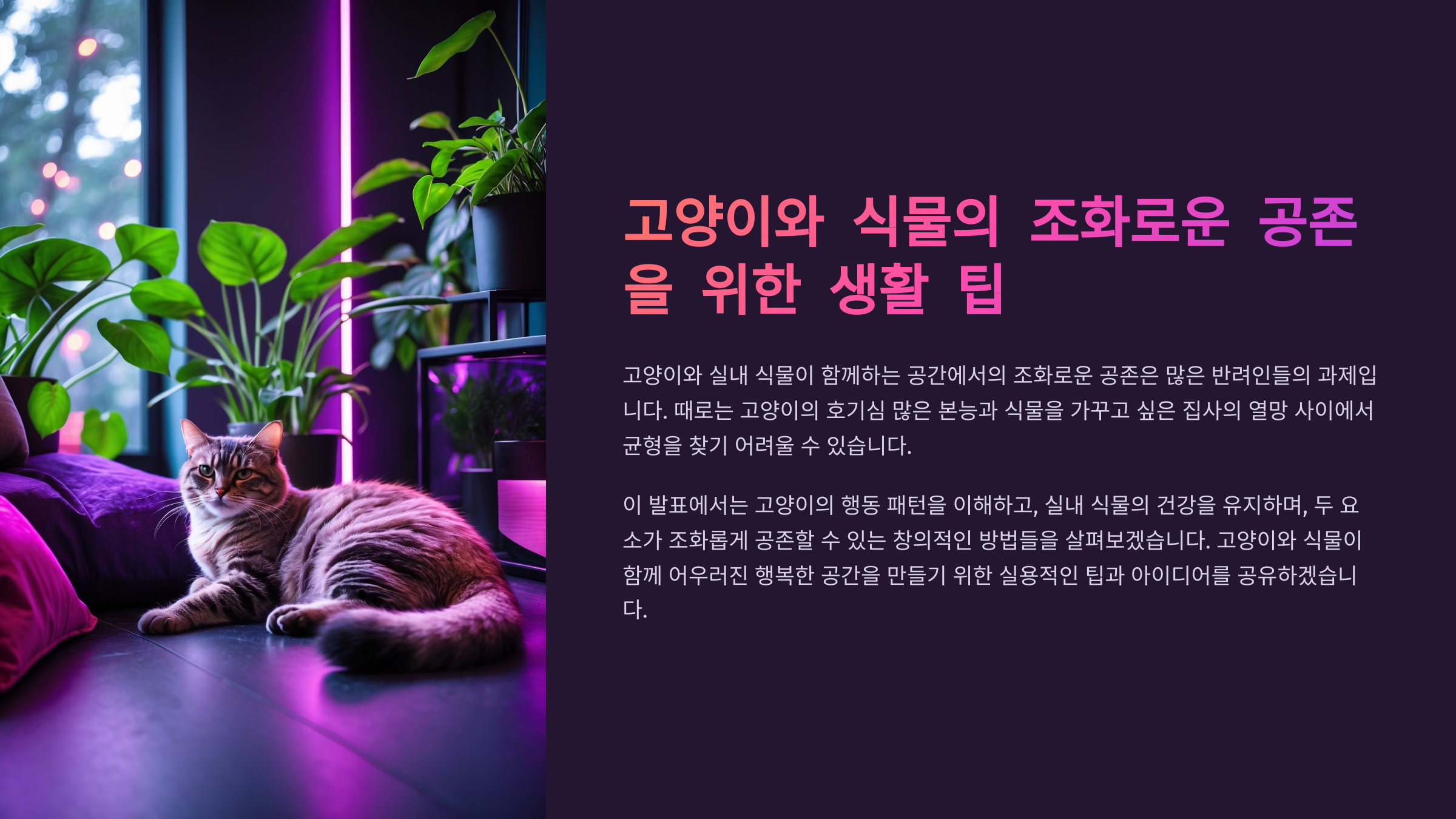 고양이와 식물, 둘 다 소중한 가족이지만 함께 키우는 건 쉽지 않은 과제죠. 고양이는 식물을 건드리거나 파헤치고, 식물은 때로 고양이에게 해가 될 수도 있어요. 하지만 몇 가지 생활 습관과 배치 노하우만 익히면 충분히 둘이 공존하는 평화로운 공간을 만들 수 있답니다.