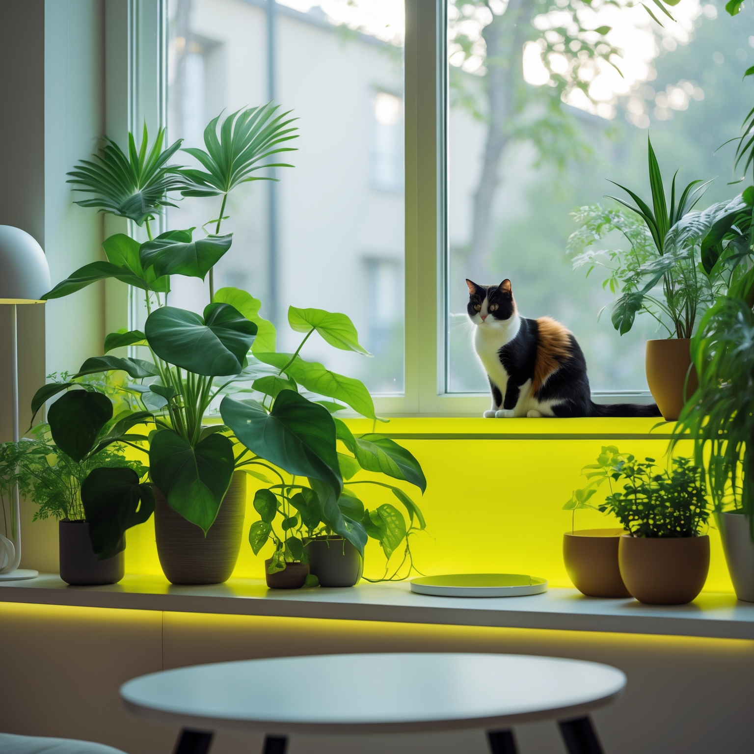 우선 ‘공기 정화 식물’을 적절히 배치하면 실내 공기 질이 좋아져요. 고양이는 사람보다 먼지와 냄새에 민감하기 때문에, 천연 공기청정기 역할을 하는 식물이 있으면 호흡기 건강에 도움이 돼요. 대표적으로 아레카야자, 칼라데아, 바나나잎 식물 등이 있어요.