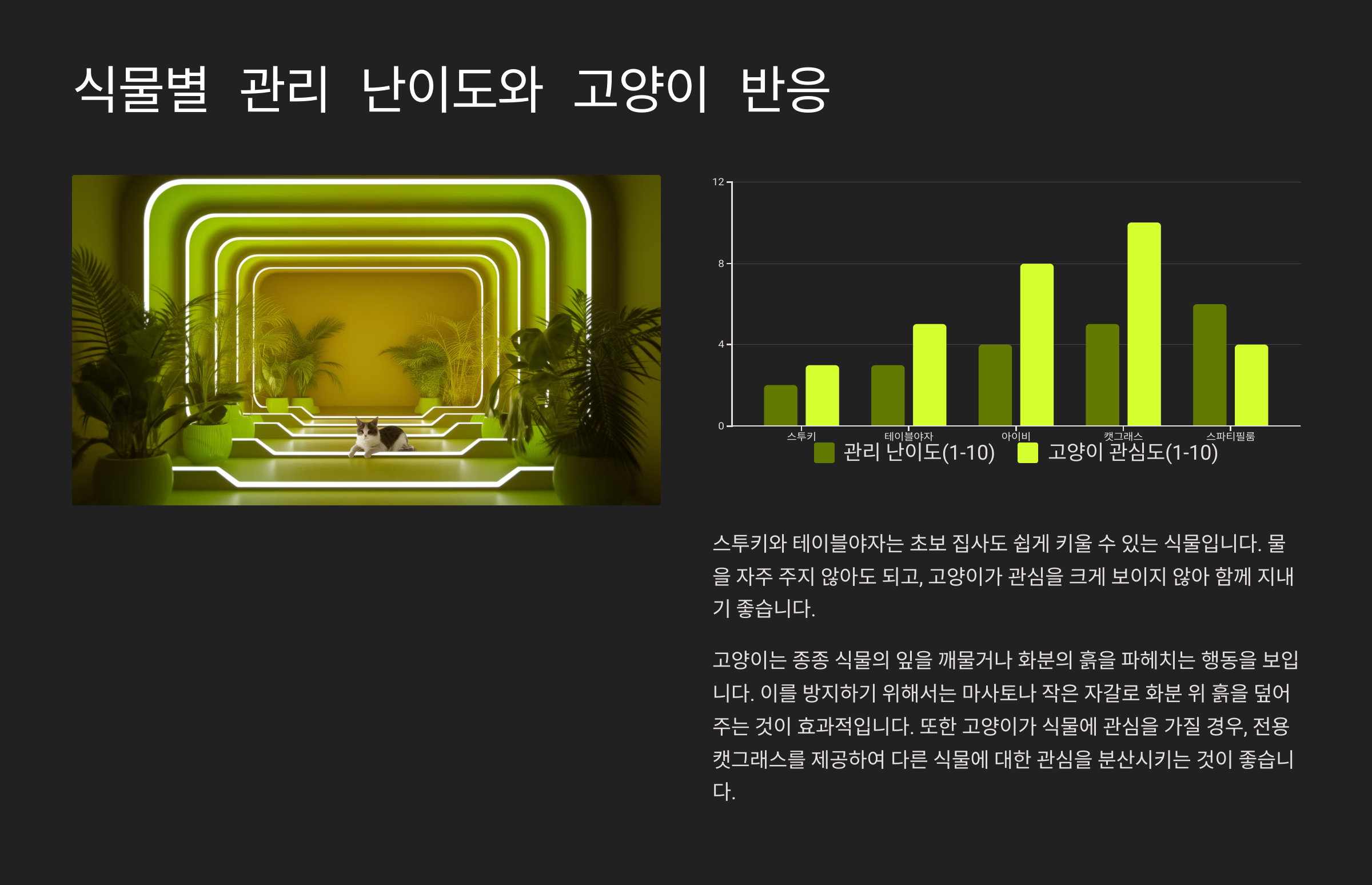 식물별 관리 난이도와 고양이 반응 🌱😺